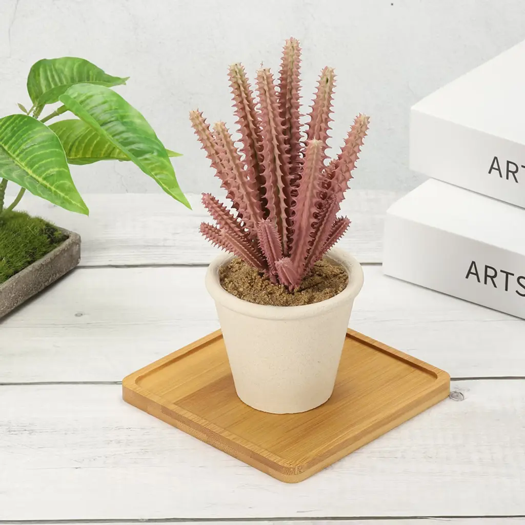 Unique Bargains Bamboo Wood Saucer, Square Plant Tray Bonsai Plants Saucer Succulent Pot 4X4 Inch 4Pcs