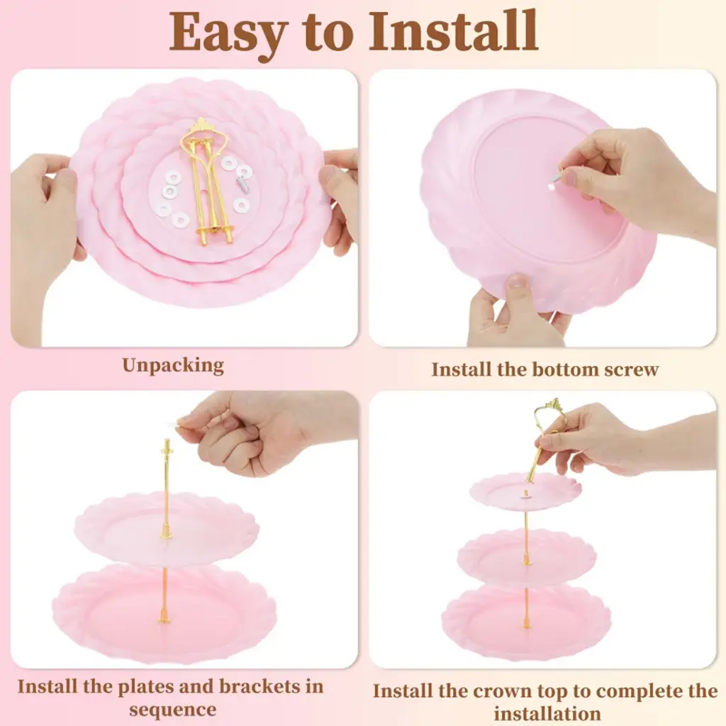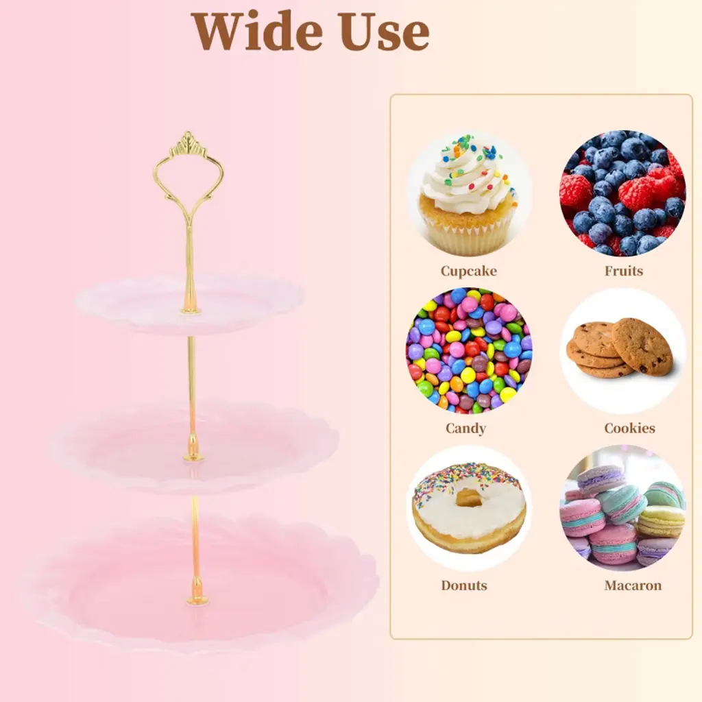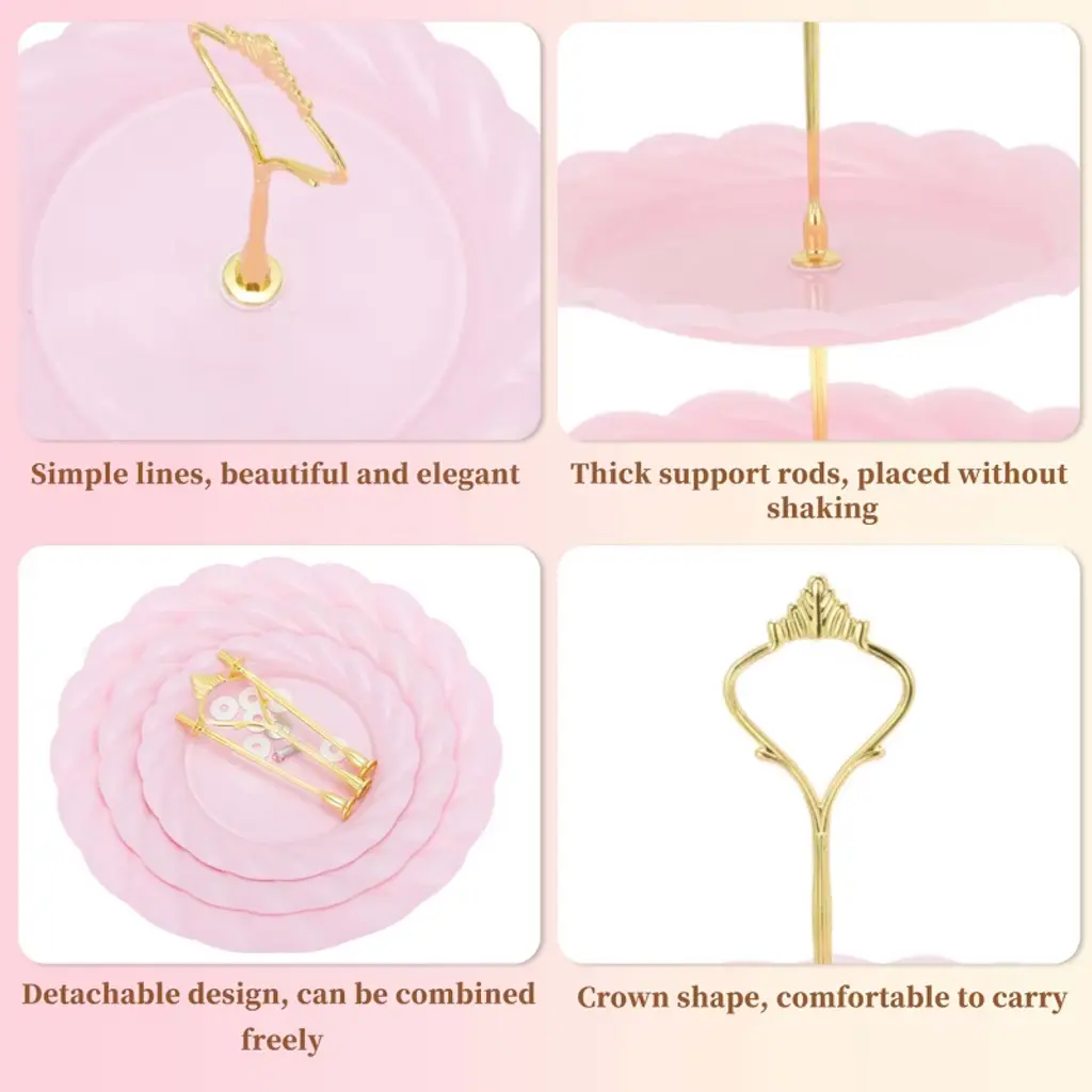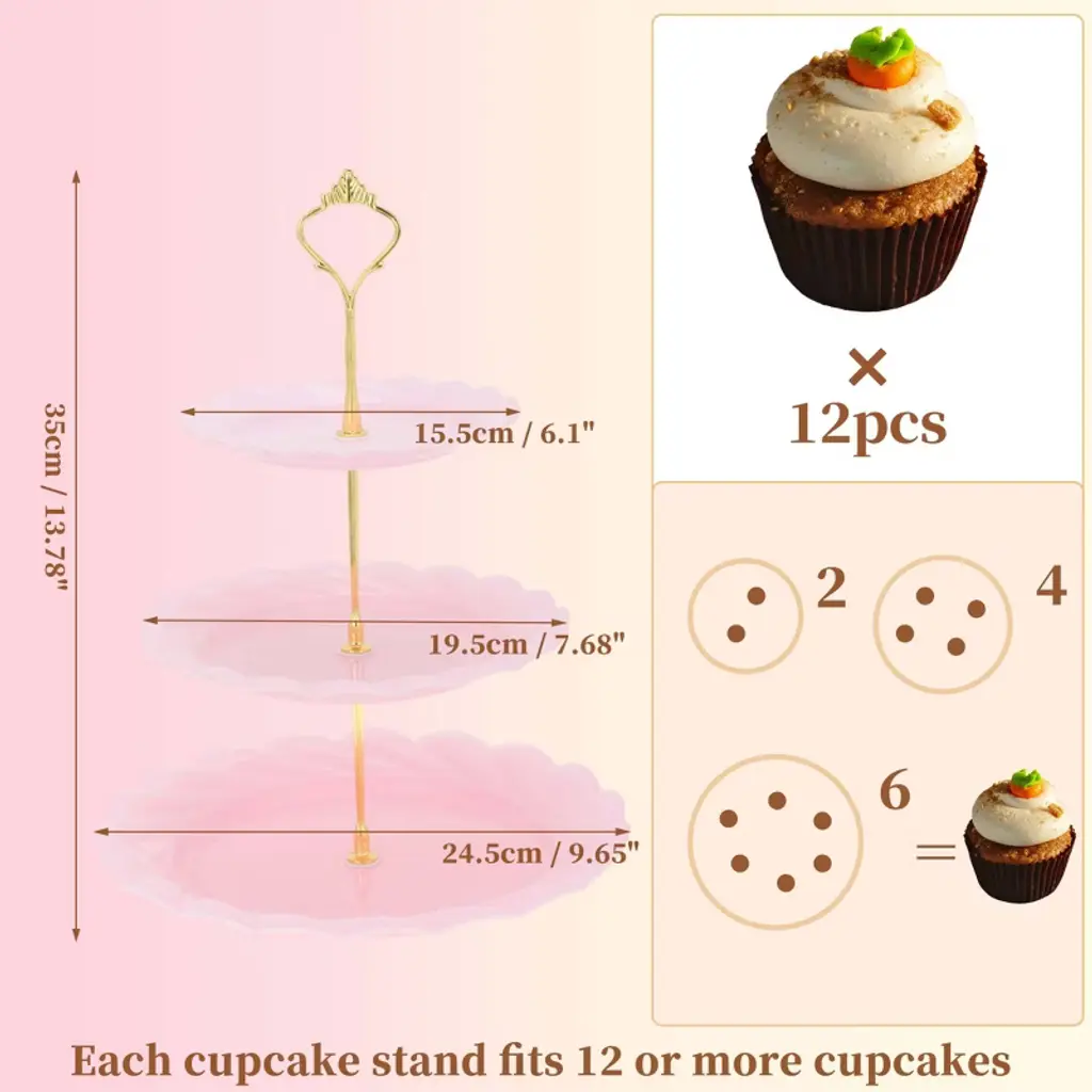 Feature:This cupcake stand holder is made from quality PP material, ensuring sturdiness and durability and having a long service time.This dessert cupcake stand makes it suitable for a wide range of occasions, including weddings, birthday parties, baby showers, and more. This cupcake stand holder is easy to assemble with no tools required, making it convenient to set up for your event. The adjustable tiers of this cupcake stand holder allow you to customize the display according to your needs. Featuring a space-saving design that allows you to save counter or table space while displaying a large number of cupcakes.Specification:Material: PP;Height: 35cm / 13.78";Plate Size: 15.5cm / 6.1", 19.5cm / 7.68", 24.5cm / 9.65";Package List:1 Set Cupcake Stand Holder.