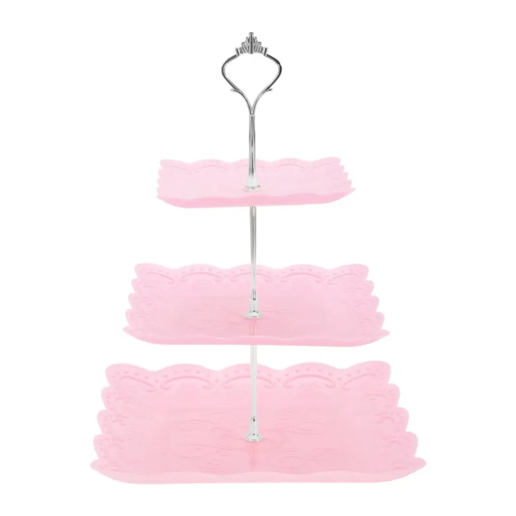 Unique Bargains Circular 3-layer Dessert Cupcake Stand With Layered Serving Tray For Pastries Donuts And Fruits Pink White