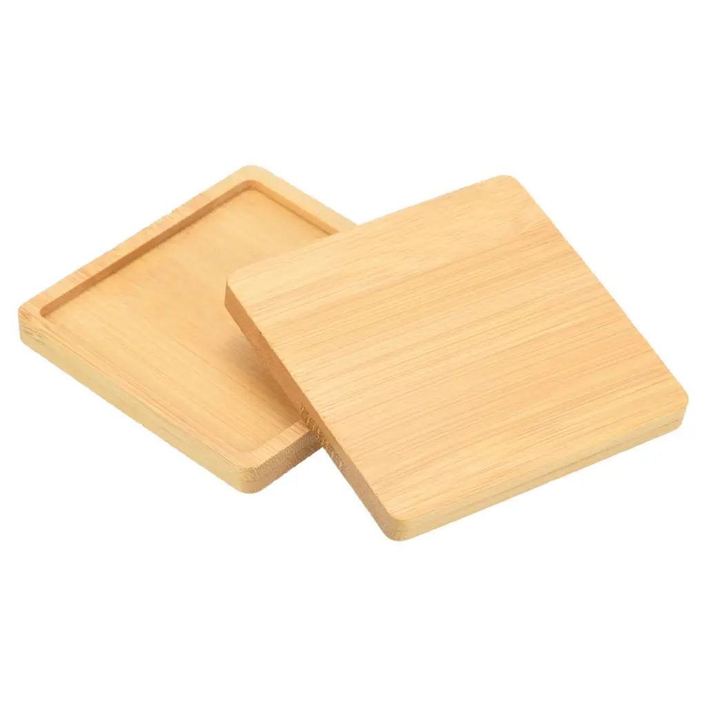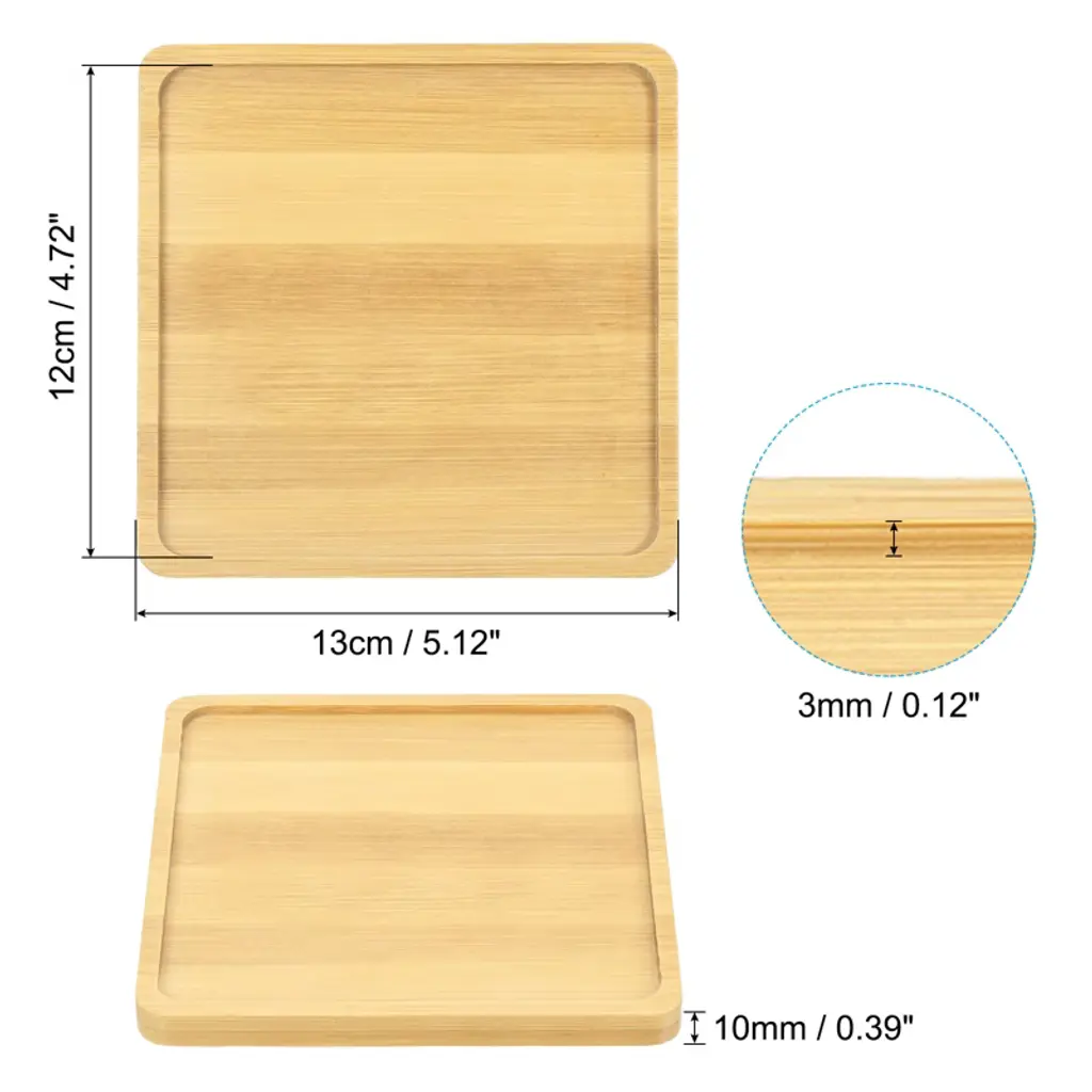 Unique Bargains Indoor And Outdoor Square Bamboo Planter Saucer Drip Tray Plant Drainage Trays 2 Pcs 13 Cm