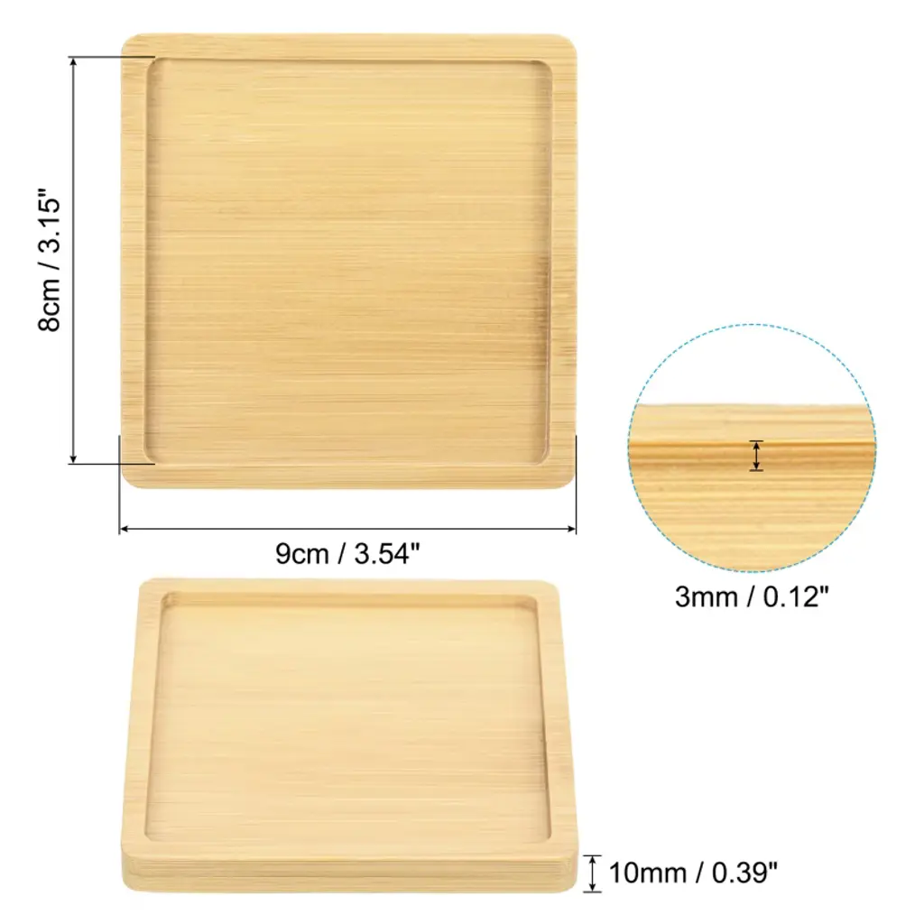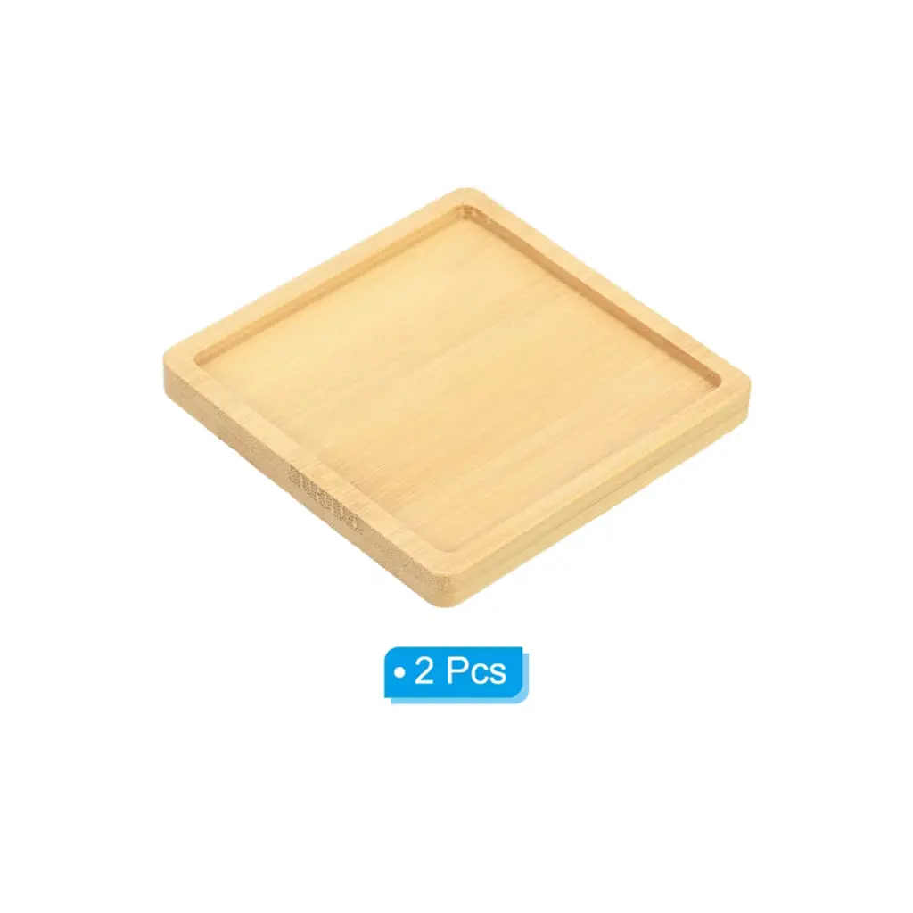 Unique Bargains Indoor And Outdoor Square Bamboo Planter Saucer Drip Tray Plant Drainage Trays 2 Pcs 9 Cm