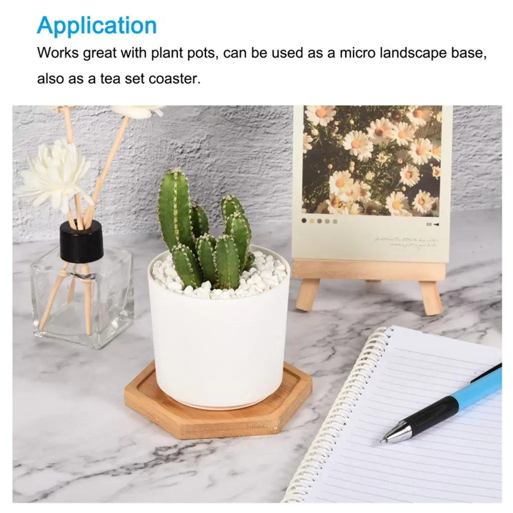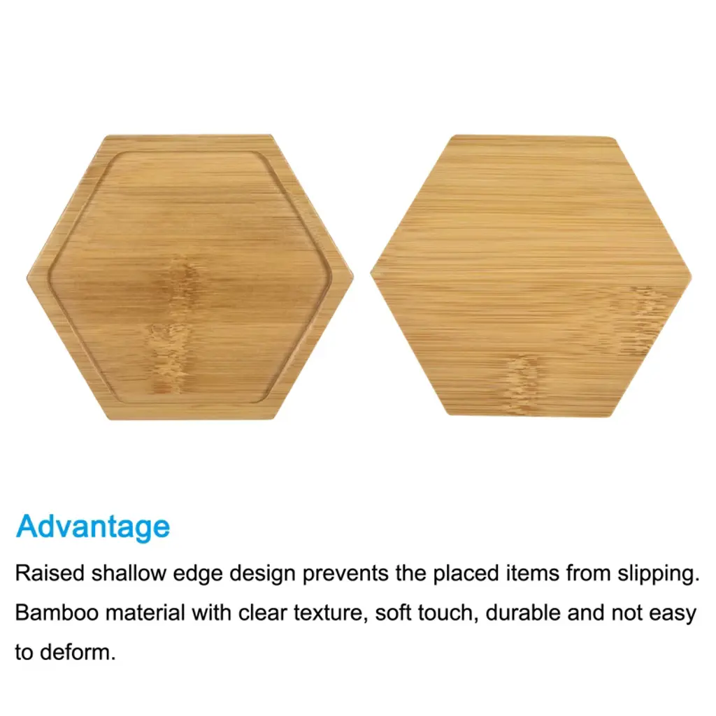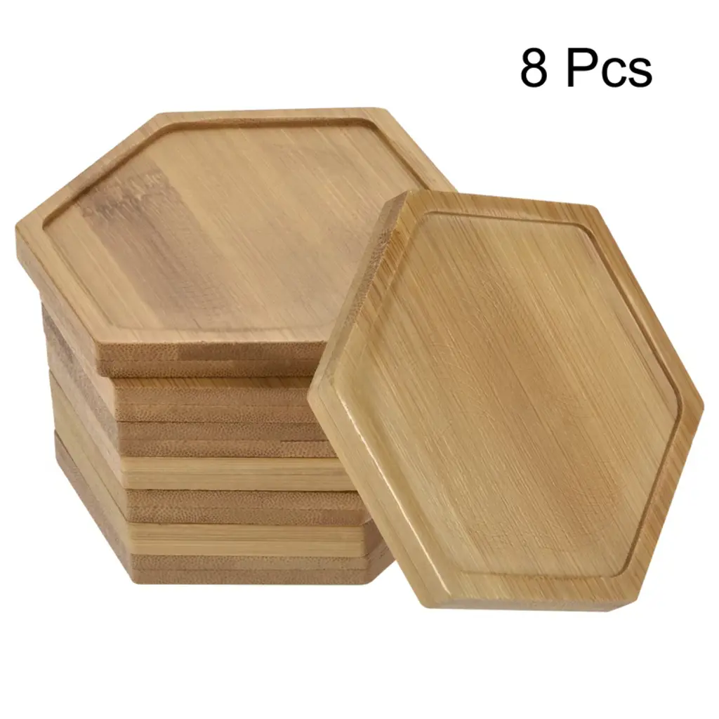 Unique Bargains Indoor Hexagonal Bamboo Planter Saucer Drip Tray Plant Drainage Trays 8 Pcs 10.5x9cm