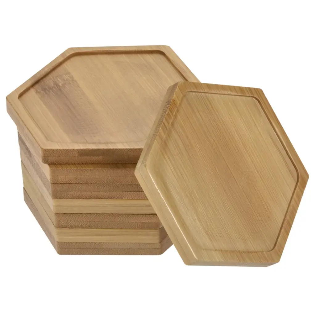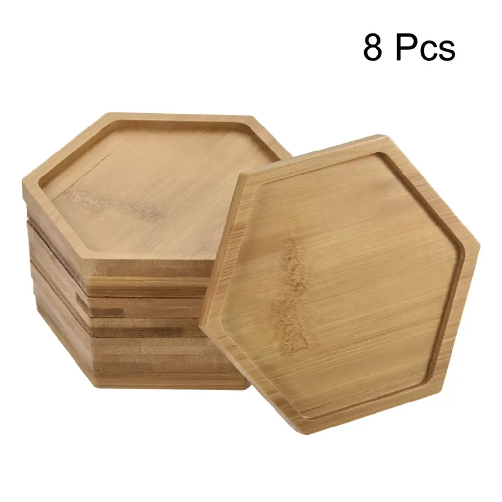 Unique Bargains Indoor Hexagonal Bamboo Planter Saucer Drip Tray Plant Drainage Trays 8 Pcs 12x10.5cm