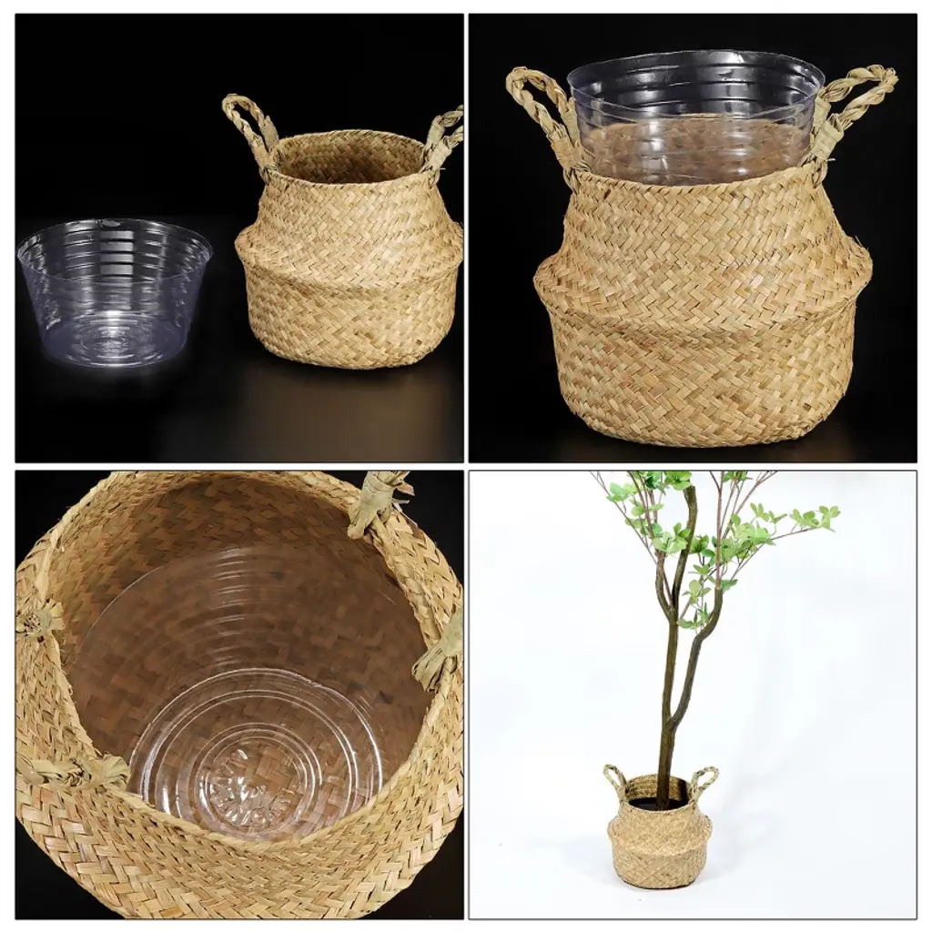 Planter pots use drainage saucers to collect the excess water and soil that drains from woven basket pots after watering. The deepened containers prevent the water from flowing through the soil in the container and out the bottom drainage holes onto the planting shelf, table, flooring, carpet, decking, furniture, or patio slab. Conducive to hydrophilous plants to keep the soil moist. This material displays the bottom status and decorative rocks clearly. Place a saucer underneath the flowerpot and fill the saucer with fresh water when it's time to water. Let it soak for several hours. Empty the saucer and let the remaining water drip out. Standing water will promote excess soil moisture and cause plant roots to get bad. They need to be drained after each watering.