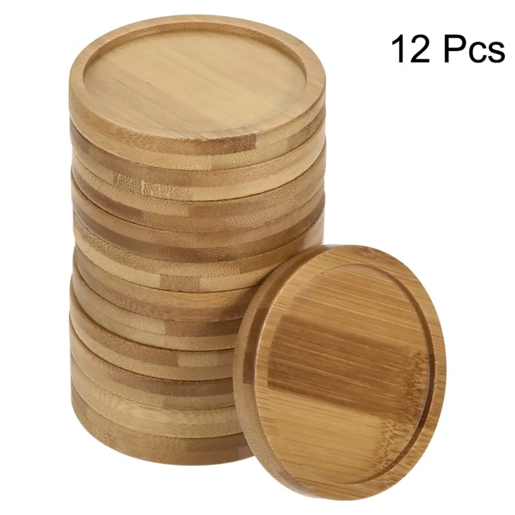 Unique Bargains Indoor Round Bamboo Planter Saucer Drip Tray Plant Drainage Trays 12 Pcs 7.5cm Od