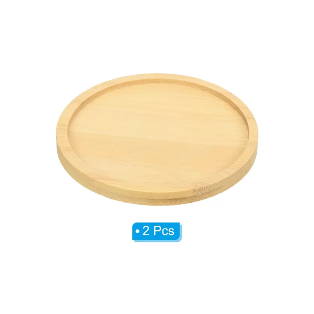 Unique Bargains Indoor Round Bamboo Planter Saucer Drip Tray Plant Drainage Trays 4.33'' Od 2 Pcs