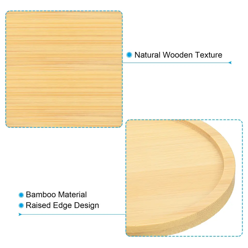 Plant pots use saucers to collect the excess soil. The pad can reduce the collision and friction between the planter and the surface underneath, and keep the floor or furniture from scratching, and dirt. Made of bamboo treated by hydrothermal carbonization material with clear texture, soft touch, durable, and not easy to deform. A raised shallow edge design prevents the placed items from slipping. Works great with plant pots, can be used as a micro landscape base, and also as a tea set coaster with strong heat absorption ability. Suitable for home, kitchen, and office. After watering the plants, please drip dry the excess water before placing it on the bamboo tray.