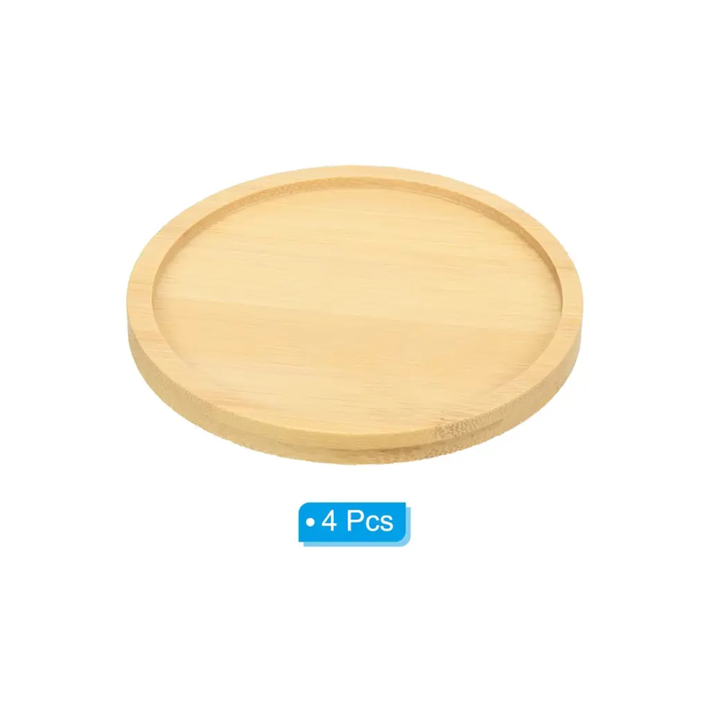 Unique Bargains Indoor Round Bamboo Planter Saucer Drip Tray Plant Drainage Trays 4.33'' Od 4 Pcs