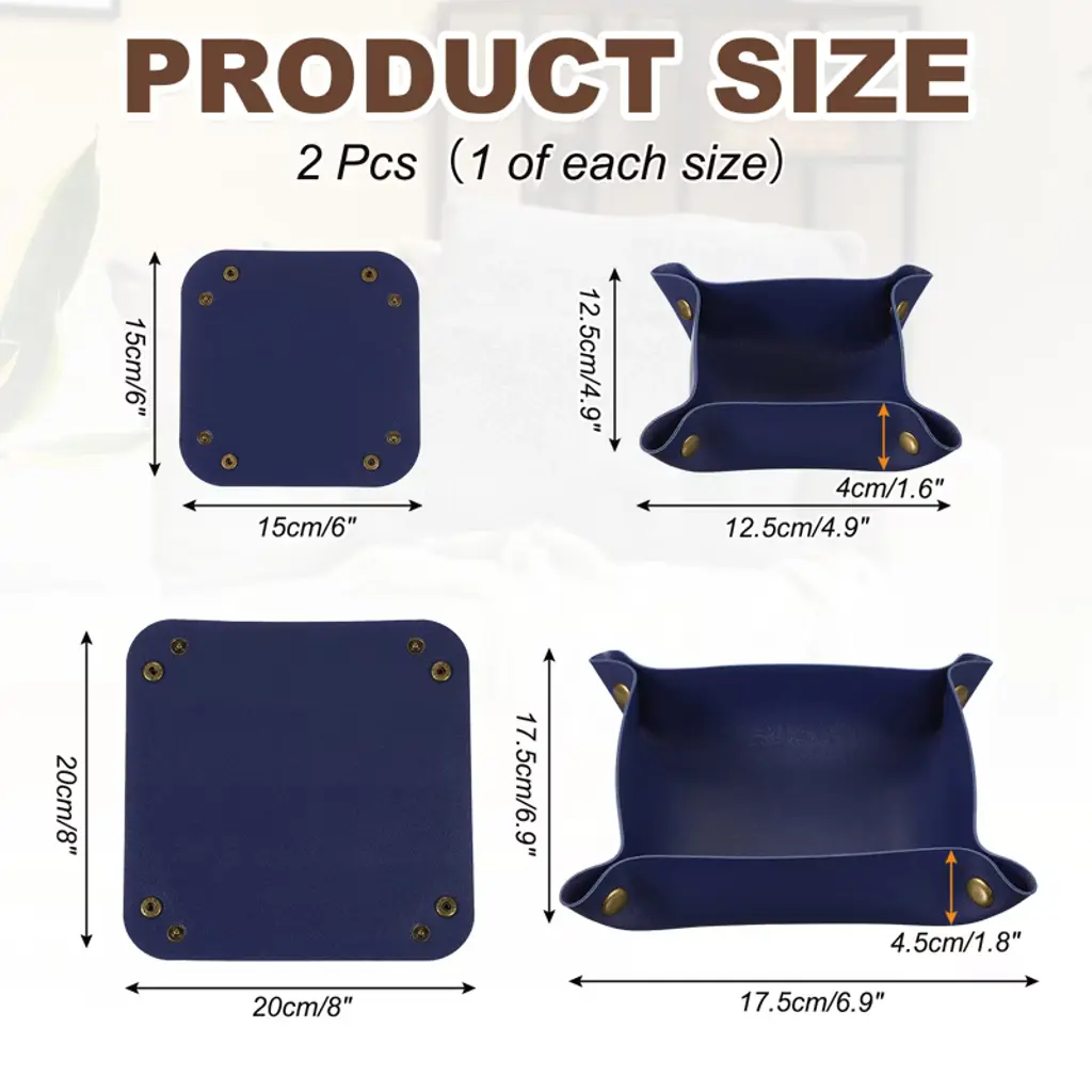 Unique Bargains Pu Leather Anti-slip Square Key Jewelry Valet Tray 4.9" X 4.9" 2 Pcs Dark Blue