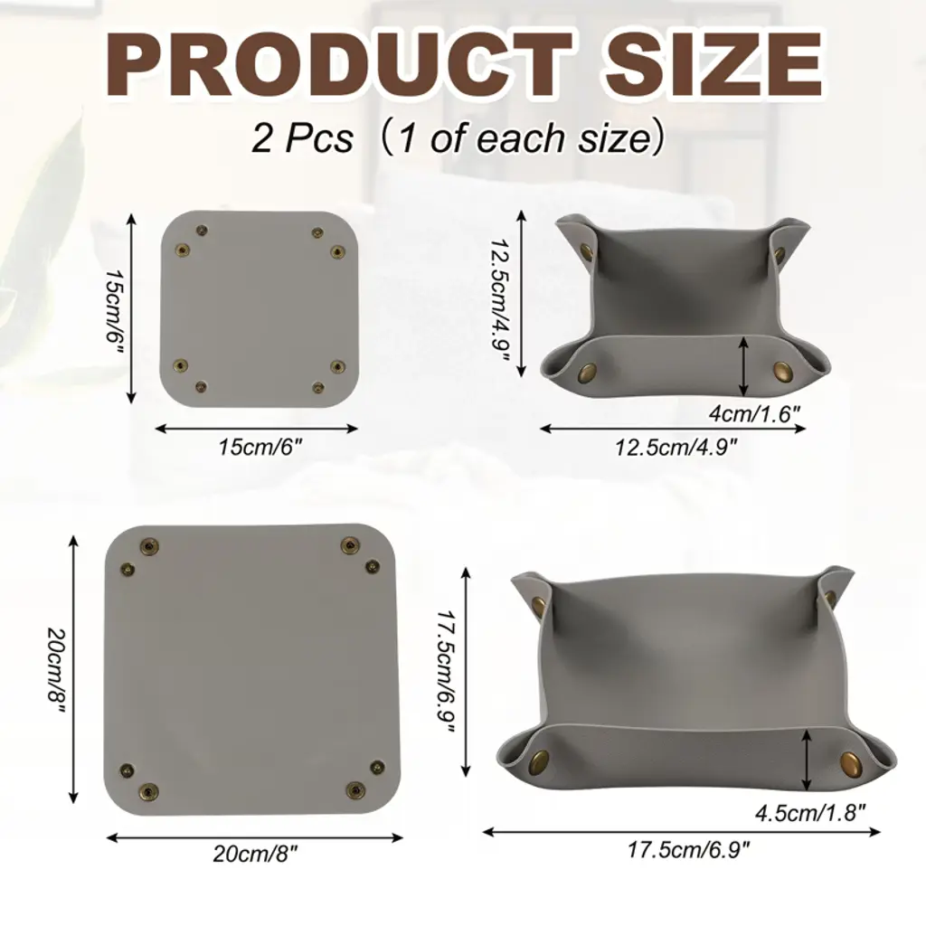Button design makes the leather tray with bright snaps easy to assemble and won't open. You can fold it to pack it inside your case or bag when you do not need it. Portable and compact, place your items in the trays to keep them safe and secure. The trays can be stacked on top of each other for easy storage when not in use. These trays can be easily moved between many locations, such as from a nightstand to an entryway table. Wide application for various settings, including entry tables, bedside stands, entrance cabinets, countertops, and dressers. Great for organizing personal belongings and reducing clutter, including keys, watches, jewelry, earbuds, cell phones, coins, makeup, pens, and glasses. This catchall storage tray serves as a good decoration for rooms and makes a wonderful gift for graduations, anniversaries, birthdays, Thanksgiving, Christmas, White Elephant, and Valentine’s Day.