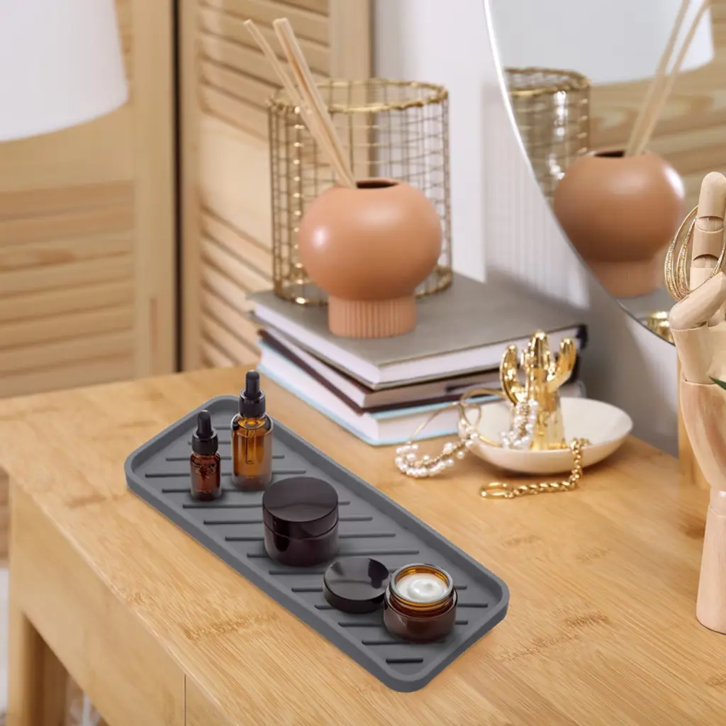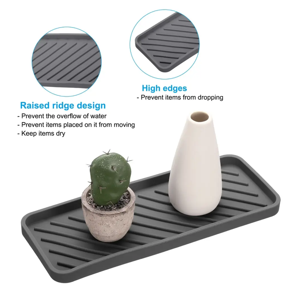 Unique Bargains Waterproof Soft Silicone Bathroom Kitchen Organizer Tray Grey