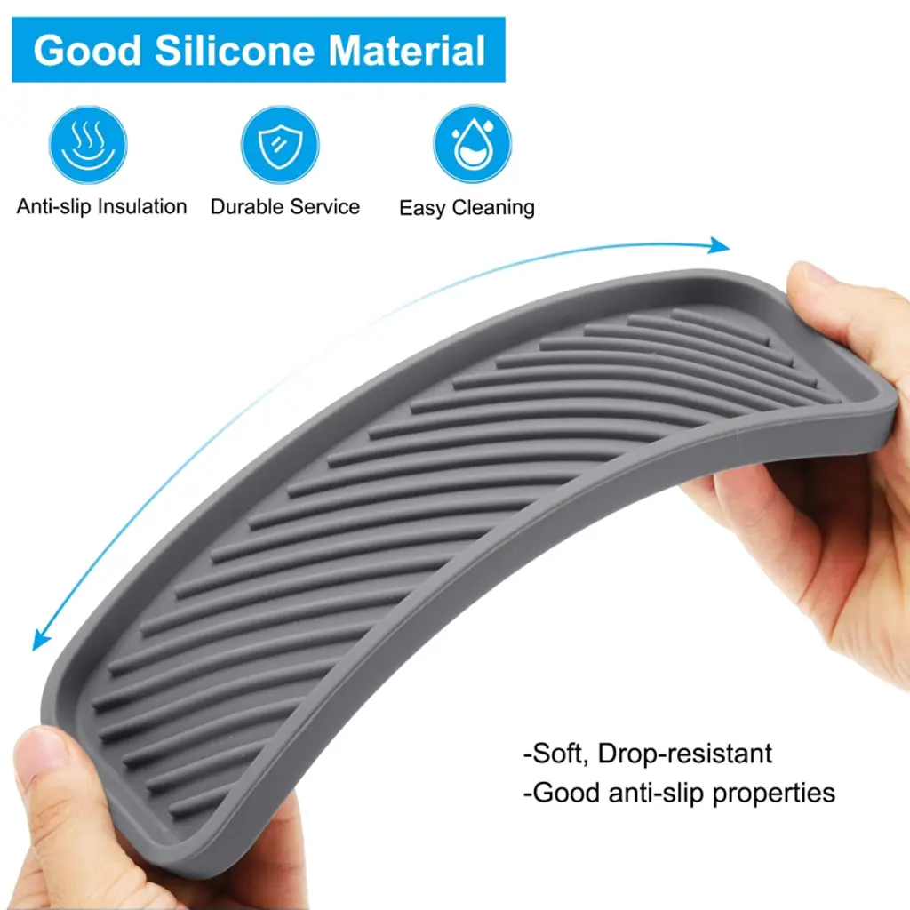 This silicone bathroom tray is a storage tray that can help you store and organize items and help keep your desktop neat and beautiful. It can be used in different places, such as living rooms, counters, kitchens, bathrooms, etc. Advantages: 1. The silicone soap dish is made of silicone, which is soft, drop-resistant, waterproof, and not easy to discolor and deform. It has good anti-slip properties and can be well fixed in place without sliding off easily. 2. The high edge can prevent items from falling. The raised ridge design prevents water from overflowing, prevents items placed on it from moving, and keeps items dry. Description: This silicone bathroom tray is easy to use. It can be used as a kitchen countertop organizer tray, dish sponge holder, soap holder, soap dispenser tray, bathroom counter tray, plant drainage mat, pet feeding mat, coffee mat, etc. In addition, it can also store items such as toothbrushes, toothpaste, cups, spoons, etc. Note: Please check the size before purchasing.