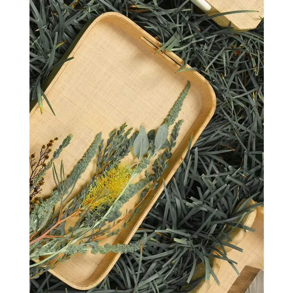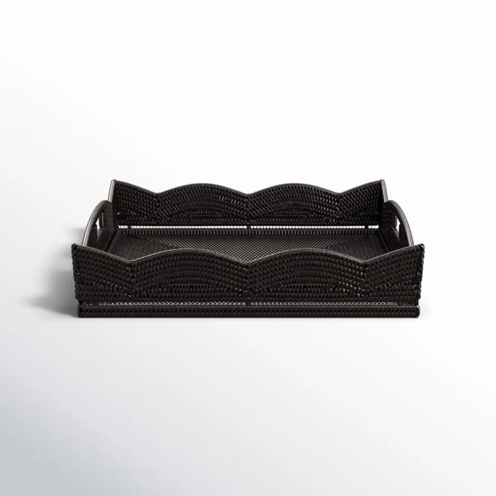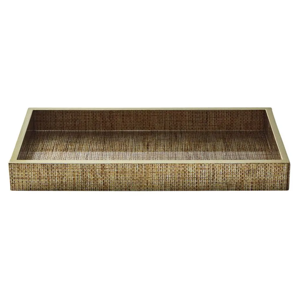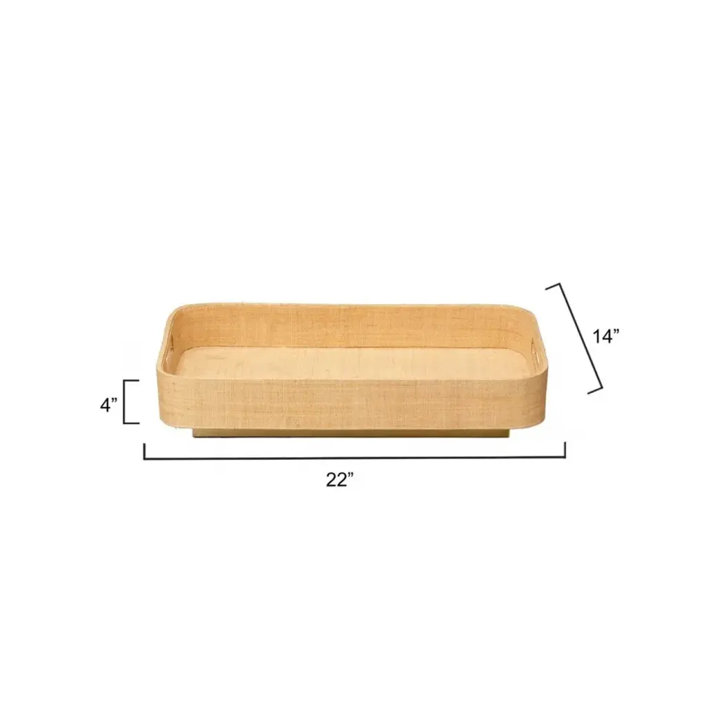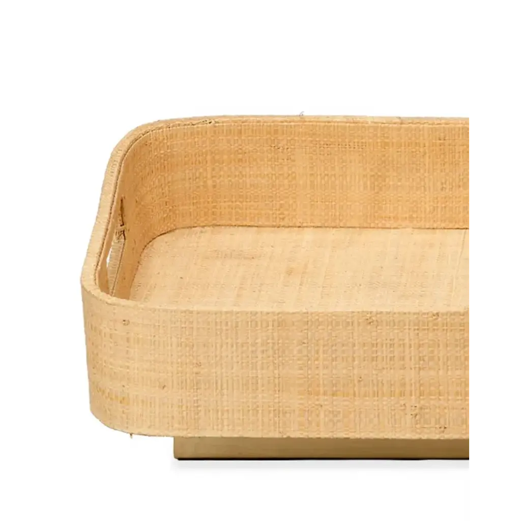 Casual yet cosmopolitan, the unexpected pairing of tropical raffia with clear cultivated lines distinguishes these decorative trays. Artisan crafted of natural palm fibers, the functional art objects can be used to display treasured collections, serve savory snacks, or to keep correspondence neatly piled on a home office desk.