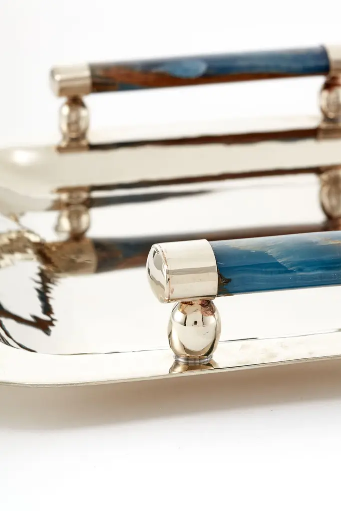 Valle Mini Small Silver Alpaca & Blue Onyx Stone Tray