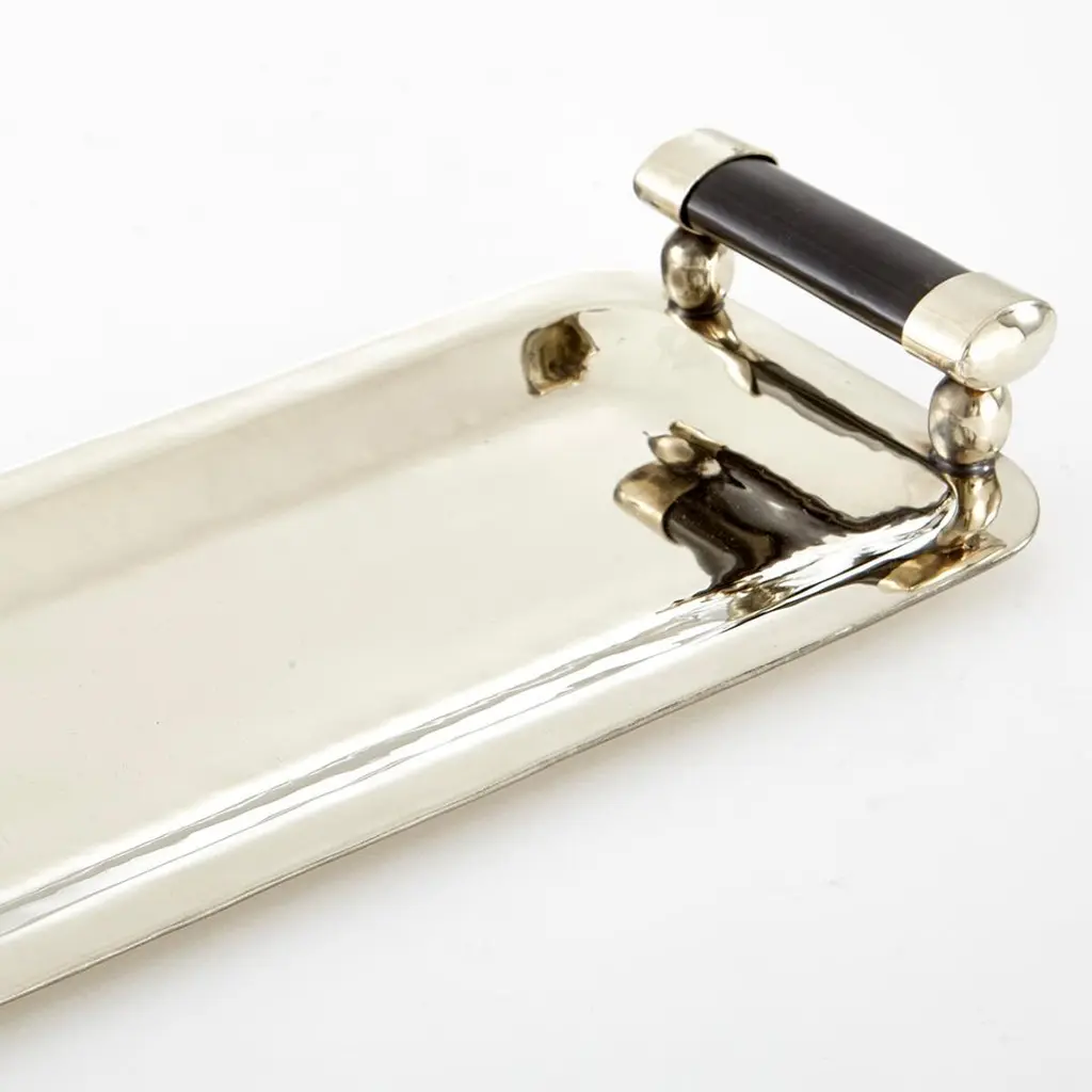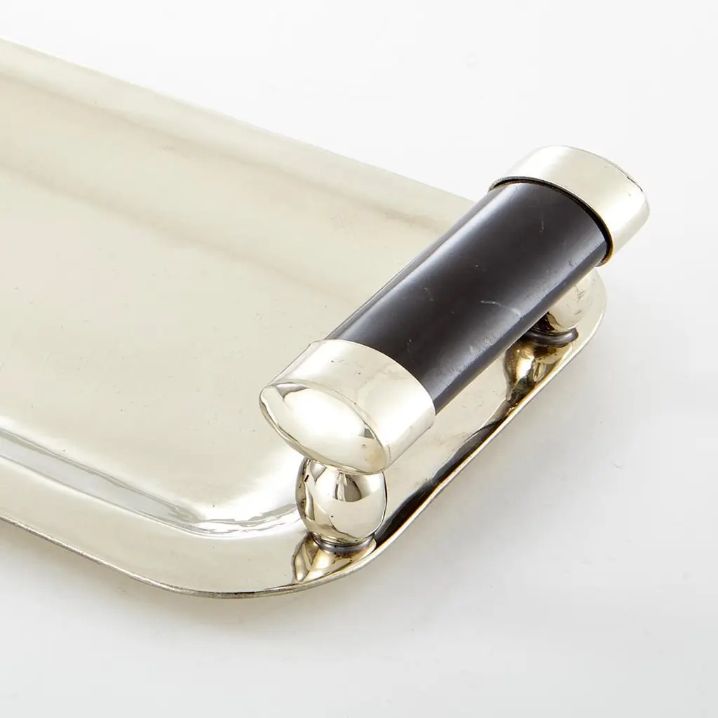 Valle Narrow Large Silver Alpaca & Black Onyx Stone Tray