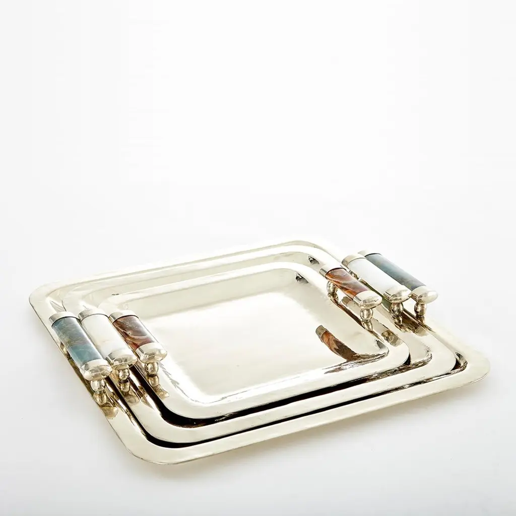Valle Square Large Silver Alpaca & Brown Onyx Stone Bar Tray