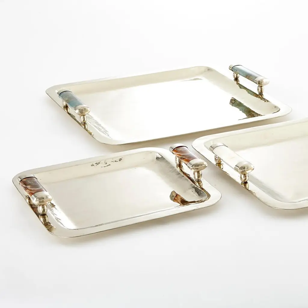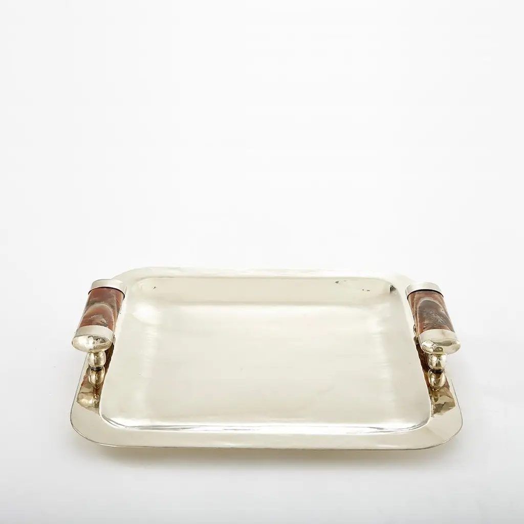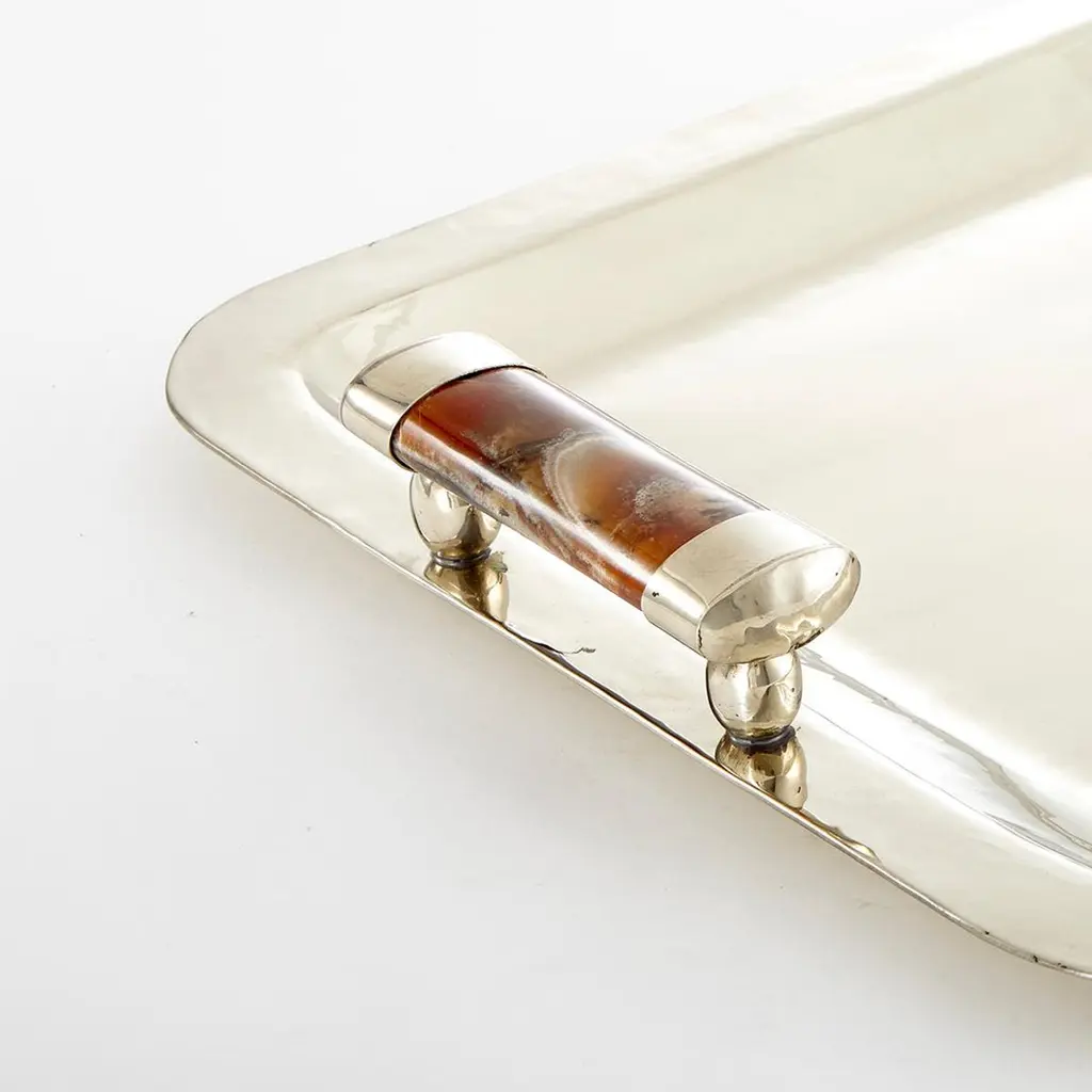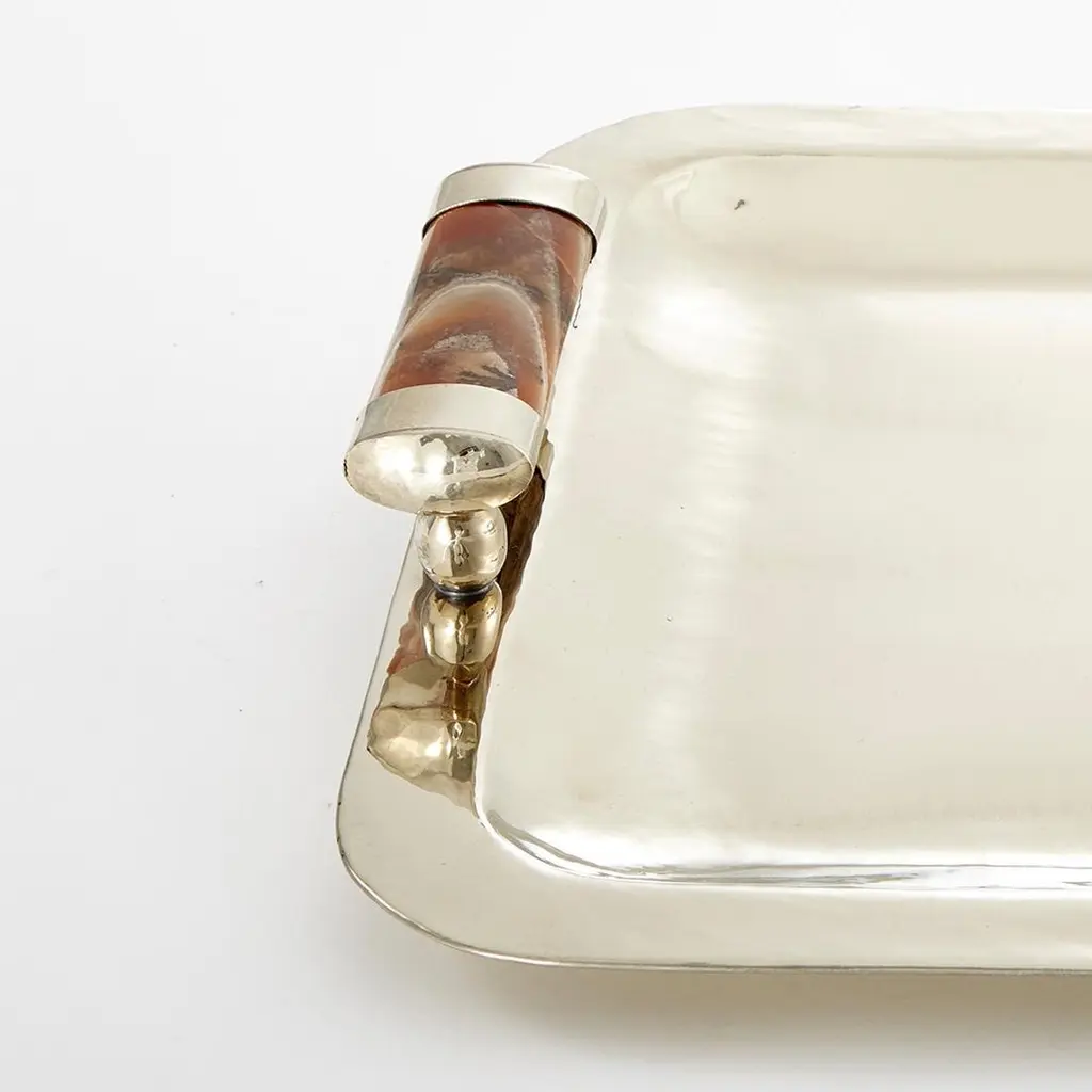 Valle Square Medium Silver Alpaca & Brown Onyx Stone Bar Tray