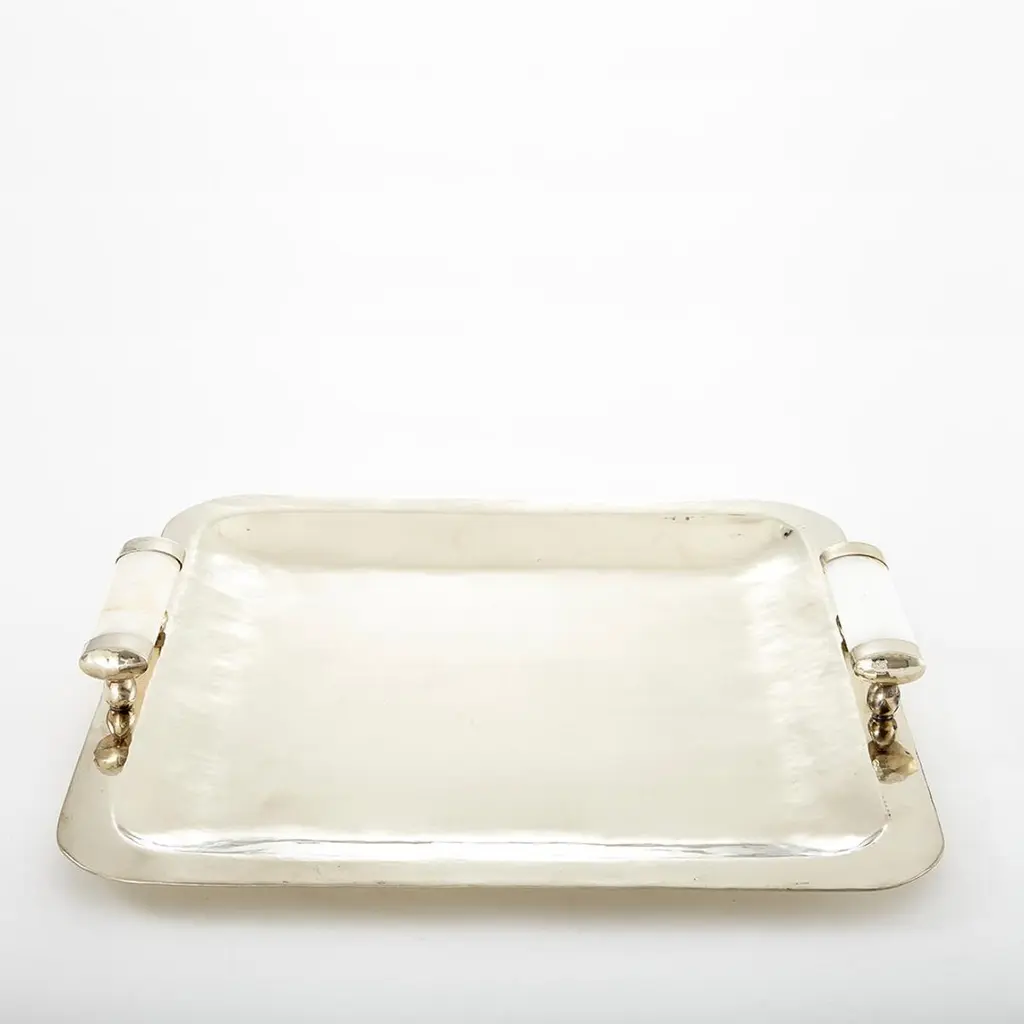 Valle Square Small Silver Alpaca & Cream Onyx Stone Bar Tray