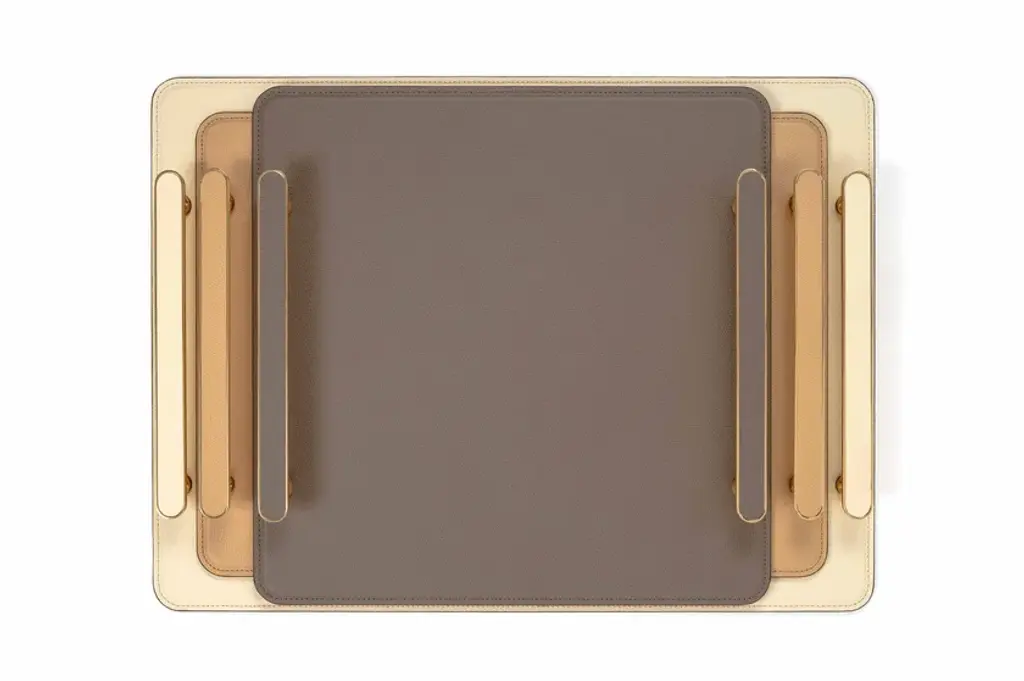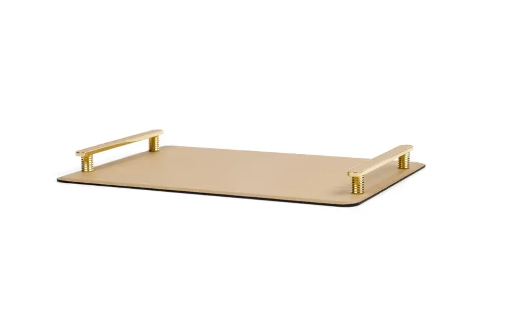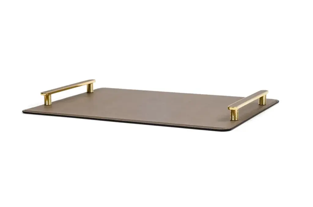 Venaria is a tray more strong thanks to the aluminium composite structure. A linear flat handle in chrome, black or shiny gold brass with leather inserts supported by a cylinder in a matching finishing that makes a luxe allure. An appealing combination that works wonderfully everywhere from the main living area to the glamorous dressing room.