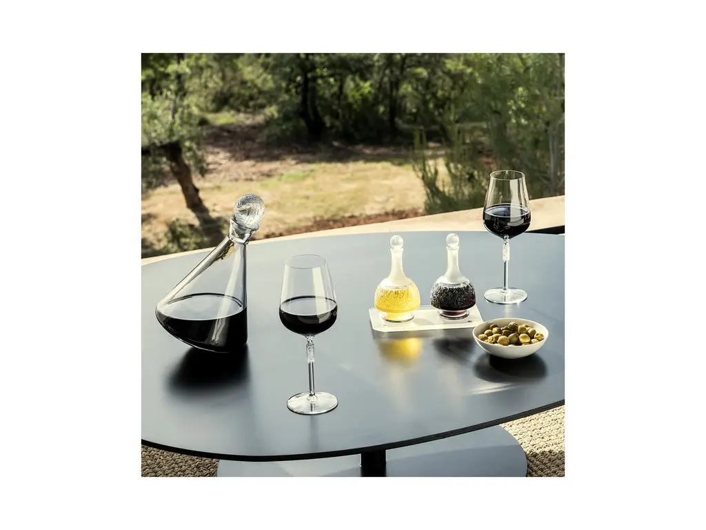 Inspired by the the Versailles Vase which was originally designed by René Lalique in 1939, the stunning Lalique Versailles Collection is a perfect example of classic design highlighting contemporary interiors. This exquisite set defined by satin-finished and repolished crystal, a Lalique signature, and finely carved floral motifs, combines aesthetics and functionality for exceptional tables.