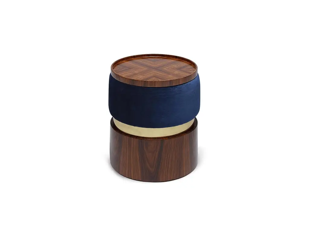 Versatile Contemporary Pouf Set B With A Tray In Wood, Brass And Velvet
