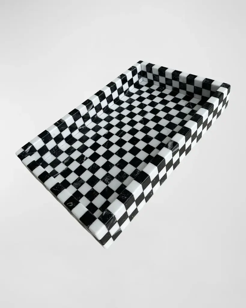 Tray is handcrafted of marble Approx. 16"L x 10"W Hand wash, wipe clean Made in Colombia undefined
