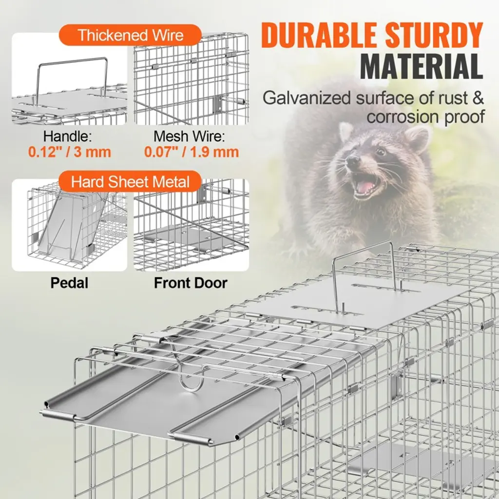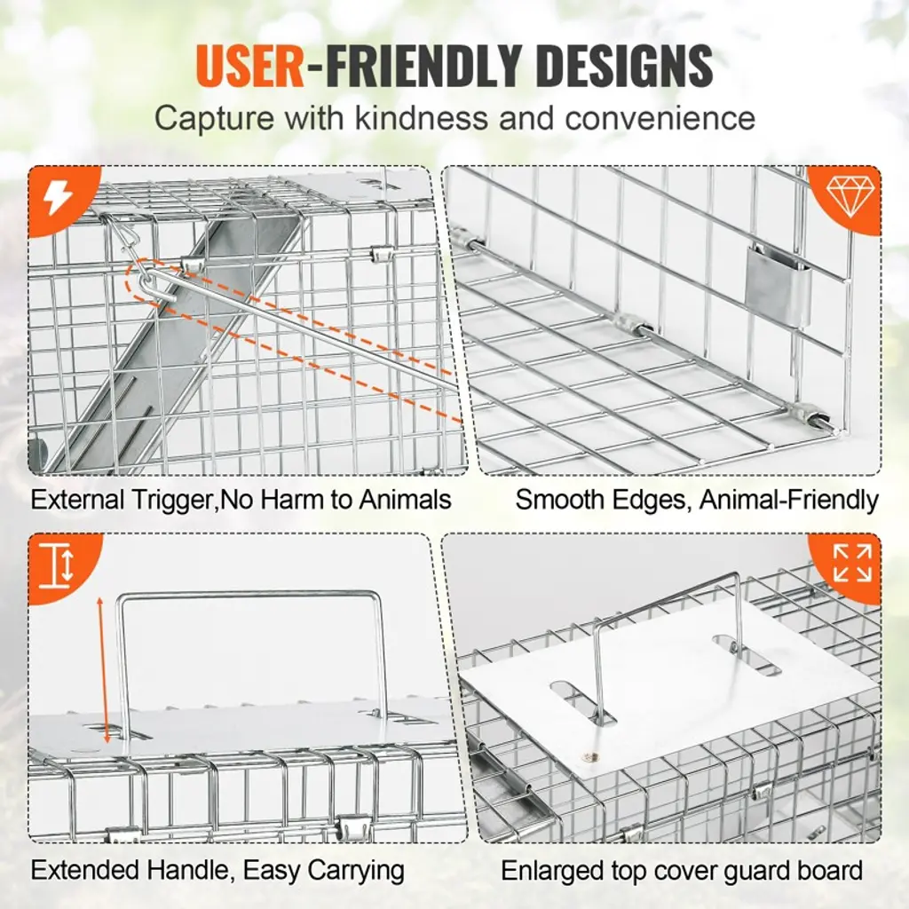 Vevor Live Animal Cage Trap, 24" X 8" X 8" Humane Cat Trap Galvanized Iron, Folding Animal Trap With Handle For Rabbits, Stray Cats, Squirrels