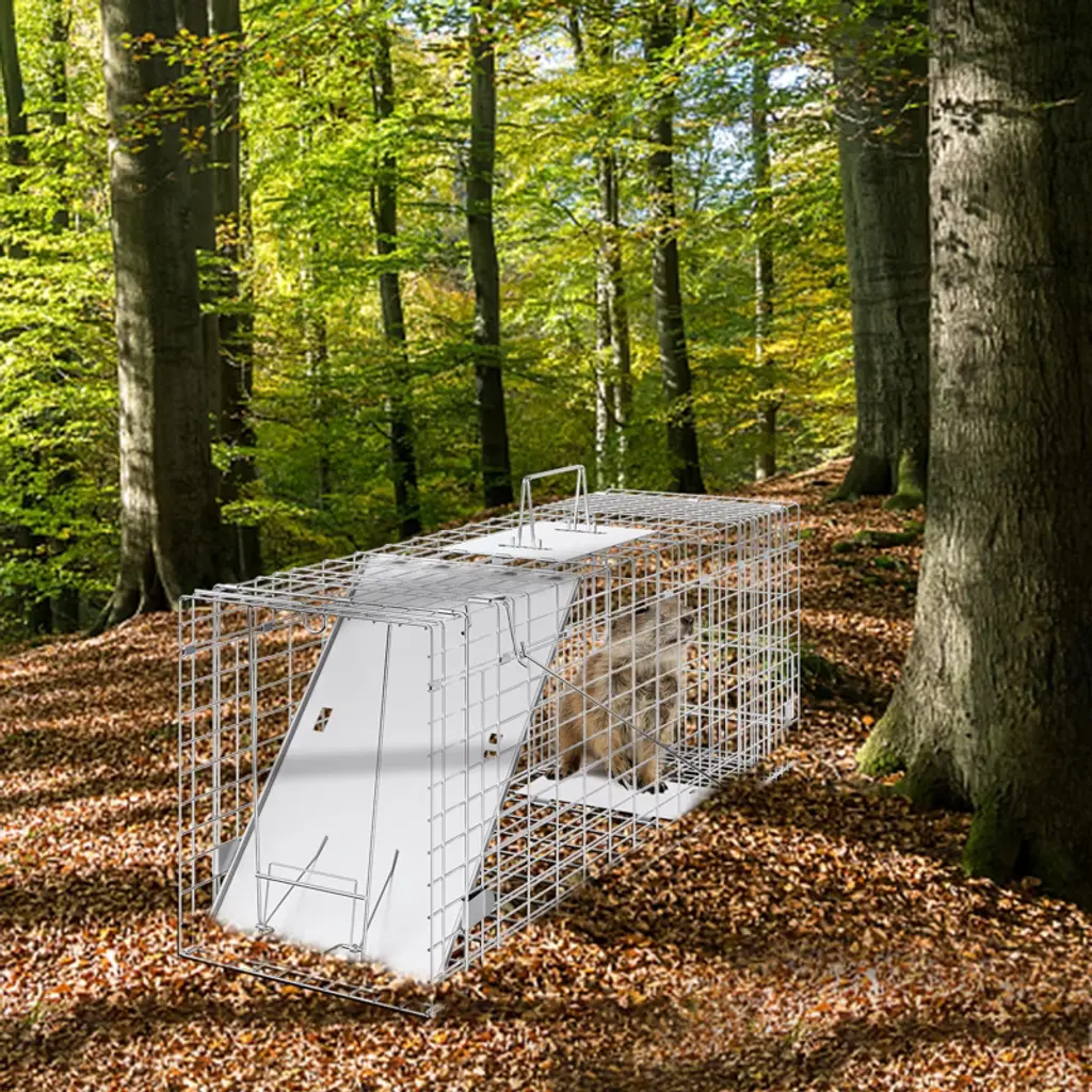 Feature: Wide Application: As urban and wilderness ecosystems intertwine, animals may disturb your life. Our cat trap is a versatile solution for various animals, including cats, raccoons, rabbits, groundhogs, armadillos, and opossums. It effectively addresses issues such as farmland invasion, release, and harassment. Humanized Designs: We prioritize humane care with our raccoon trap. The L-shaped lever ensures the trap won't harm animals when triggered. The dense mesh prevents escapes and protects against external attacks or stolen food. Smooth wire edges prevent animals from panicking or biting the wire, ensuring their safety. Sturdy and Durable: Our animal trap is built to last. It is constructed with sturdy, thickened wires that withstand animal bites and impacts without deformation or cracking. The galvanized coating provides excellent corrosion resistance, ensuring stability and durability in all weather conditions. Simple and User-friendly: Our live trap is designed for your convenience. It comes pre-assembled, saving you from tedious setup steps. Just unfold the cage, secure the rear door, and connect the trap mechanism to start using it quickly. This saves time and effort, allowing you to engage in capture work promptly. Portable and Easy to Store: Our efficient groundhog trap is portable and easy to store. It features a convenient handle for easy mobility, with an extended design that prevents accidental injuries from animals. The collapsible design allows for easy storage, freeing up space when not in use. Package Content 1 x Live Animal Cage Trap 10 x Nylon Strips
