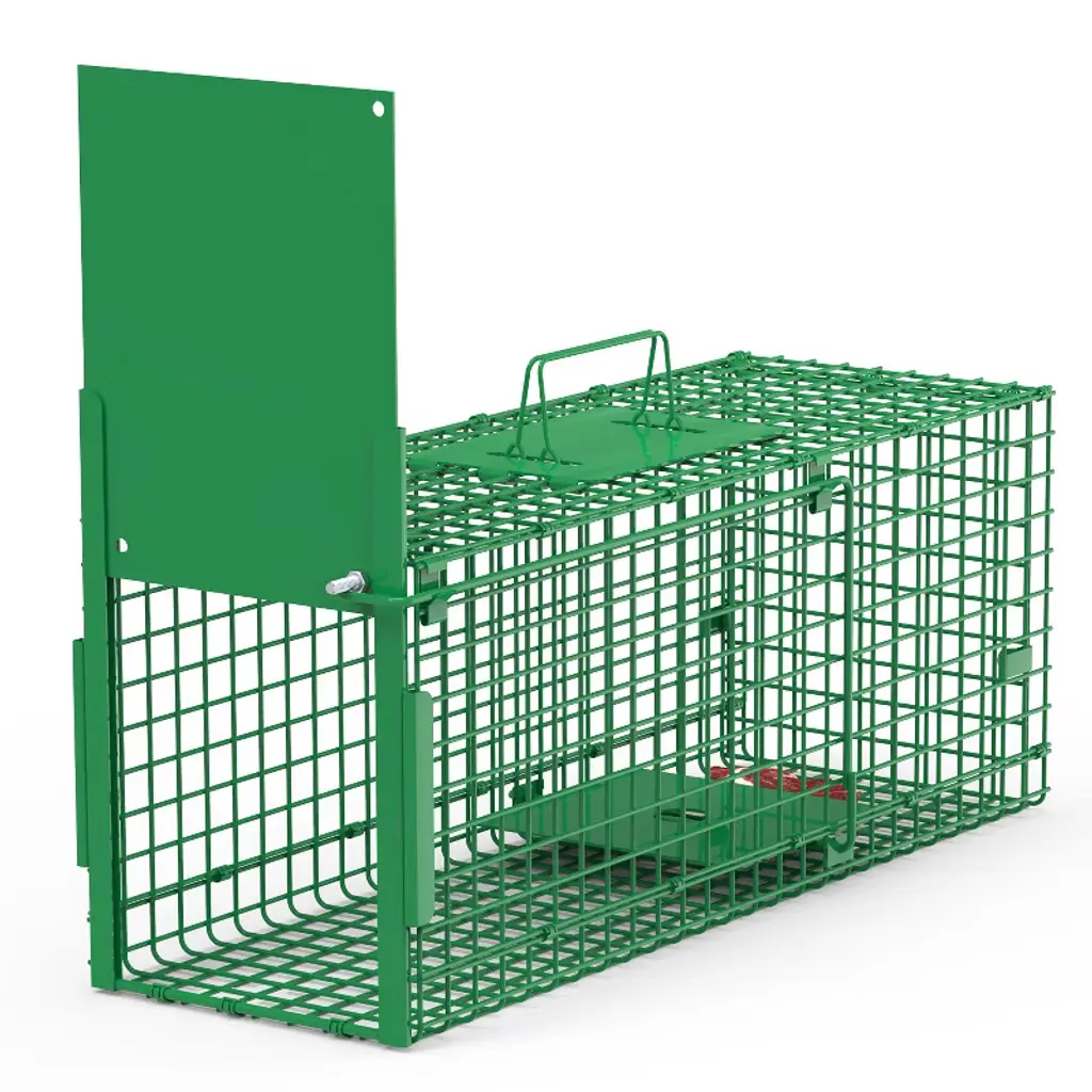 "Wide Application: As urban and wilderness ecosystems intertwine, animals may disturb your life. Our cat trap is a versatile solution for various animals, including cats, raccoons, rabbits, groundhogs, armadillos, and opossums. It effectively addresses issues such as farmland invasion, release, and harassment. Humanized Designs: We prioritize humane care with our raccoon trap. The L-shaped lever ensures the trap won't harm animals when triggered. The dense mesh prevents escapes and protects against external attacks or stolen food. Smooth wire edges prevent animals from panicking or biting the wire, ensuring their safety. Sturdy and Durable: Our animal trap is built to last. It is constructed with sturdy, thickened wires that withstand animal bites and impacts without deformation or cracking. The galvanized coating provides excellent corrosion resistance, ensuring stability and durability in all weather conditions. Simple and User-friendly: Our live trap is designed for your convenience. It comes pre-assembled, saving you from tedious setup steps. Just unfold the cage, secure the rear door, and connect the trap mechanism to start using it quickly. This saves time and effort, allowing you to engage in capture work promptly. Portable and Easy to Store: Our efficient groundhog trap is portable and easy to store. It features a convenient handle for easy mobility, with an extended design that prevents accidental injuries from animals. The collapsible design allows for easy storage, freeing up space when not in use. Package Content 1 x Live Animal Cage Trap 10 x Nylon Strips "