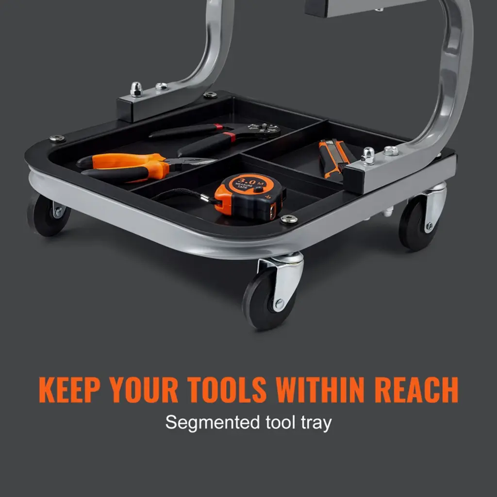 Vevor Rolling Creeper Garage/shop Seat, 250 Lbs Capacity Padded Rolling Workshop Stool With Tool Tray Storage, Mechanic Stool, Black
