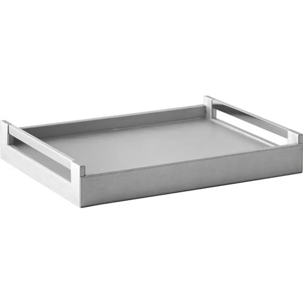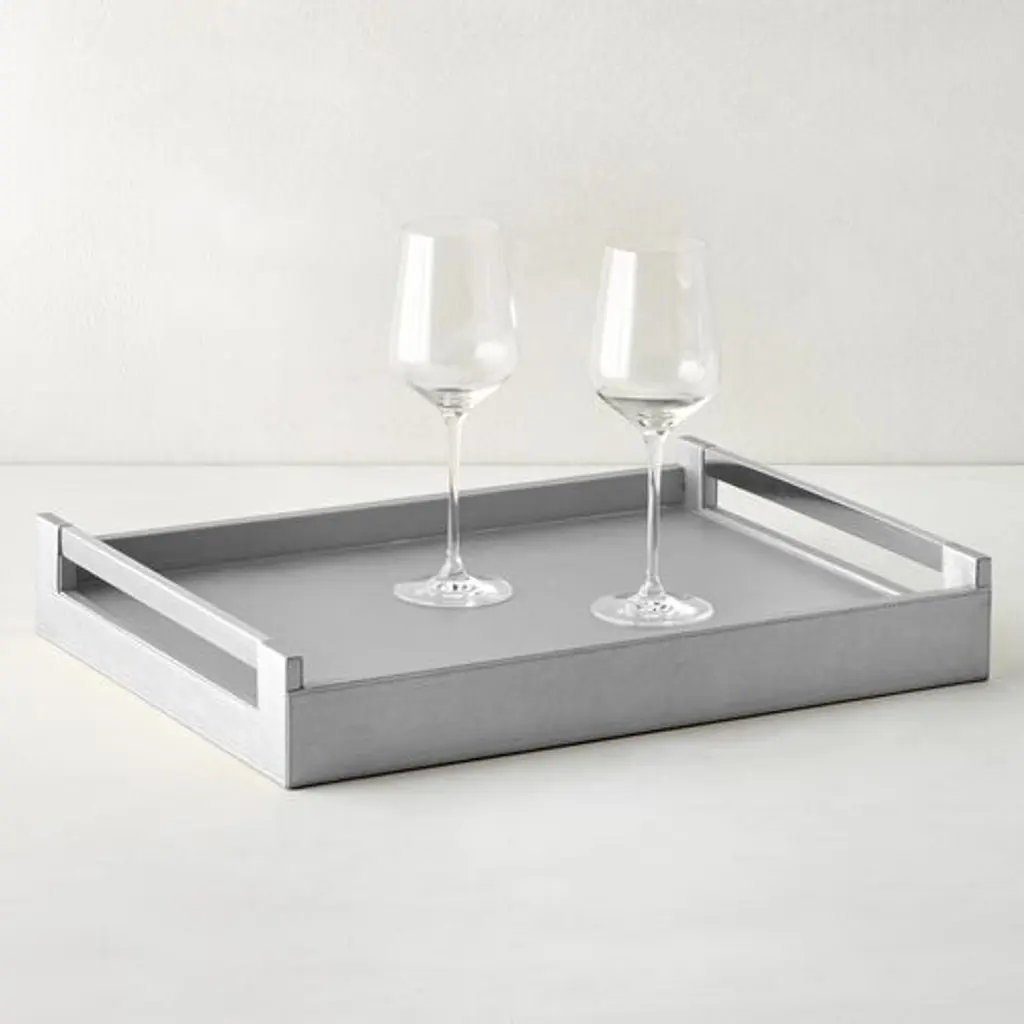 Whether you use it to carry glassware to guests or to corral mail on your entryway console, this faux-leather tray will bring panache to its surroundings. Golden handles make it easy to carry and add to the glamour.Founded in 1979 as a poster shop in California, Z Gallerie has evolved into a source for furniture, lighting, rugs, and more that exemplify modern glamour.