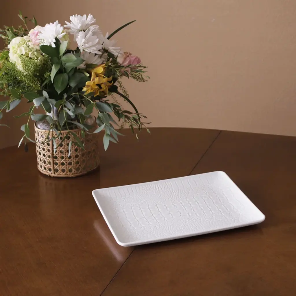 Destined to become a seaside favorite. Beatriz Ball's silvery OCEAN Coral Emerson Long Rectangular Tray with Gold Handles has a glimmering sand-cast surface that is both beautiful and functional. The addition of contrasting coral-inspired handles in a proprietary gold tone elevates the tray to one worthy of your favorite recipes. With a design that opens up many serving options, the tray is great for casual and formal gatherings of friends and family. Designer Beatriz Ball says of the shimmering quality of the surface, "Love this cool new finish, it glimmers like moonlight on water." An original design and Beatriz Ball exclusive that makes an awesome gift! Beatriz Ball's intensely handmade products use eco-friendly and sustainable materials and are crafted by artisans who trace a heritage of metalworking for generations. Made of a top quality, FDA safe, easy-care aluminum alloy.