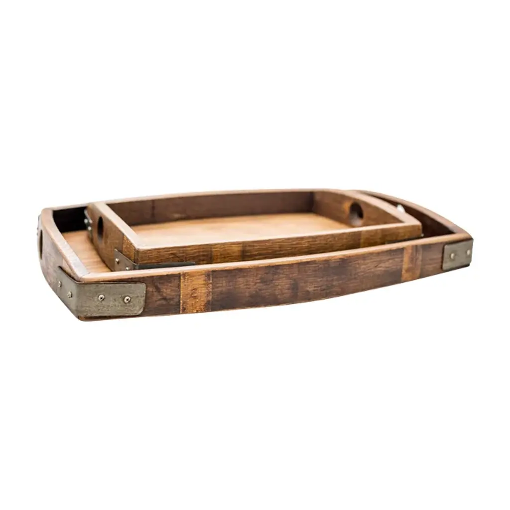 As a serving tray, or a display, the wine barrel oak trays are stylish and versatile. Try as a decorative layer on a coffee table or counter top.