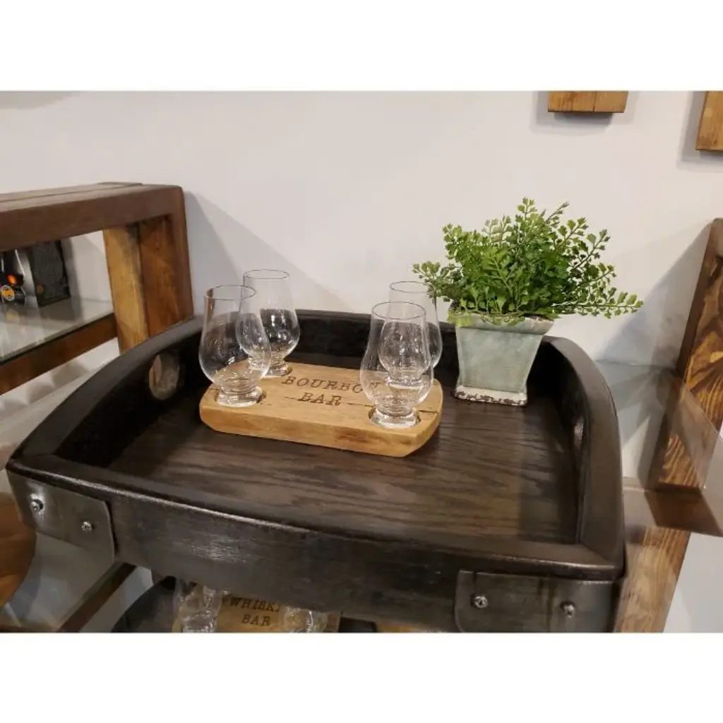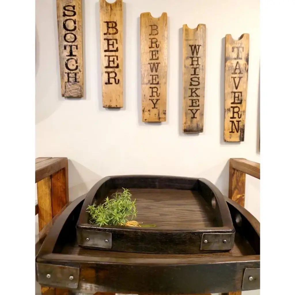 As a serving tray, or a display, the wine barrel oak trays are stylish and versatile. Try as a decorative layer on a coffee table or counter top.