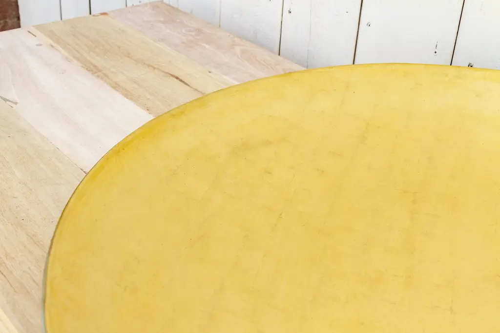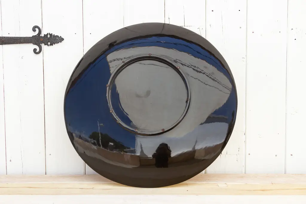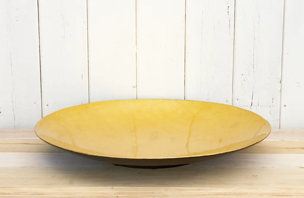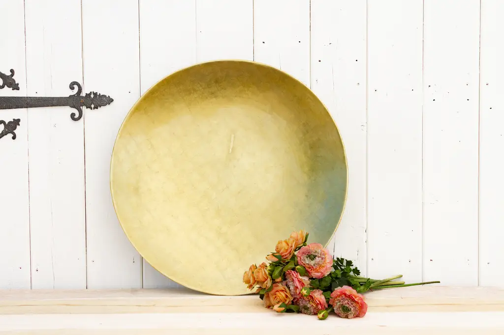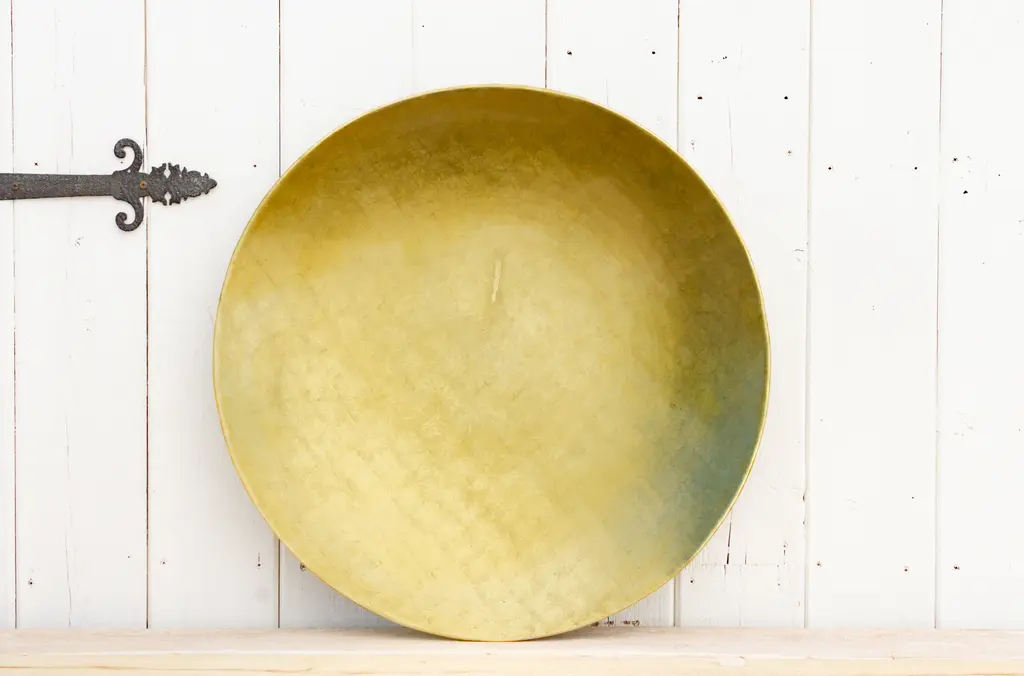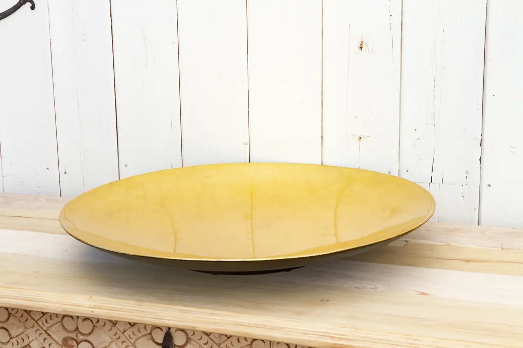 An elegant display piece, this late 20th century extra large bowl that features a beautiful gold leaf lacquered finish. This vintage Asian round bamboo platter has a beautiful finish and it will look beautiful as a tabletop centerpiece or wall art.