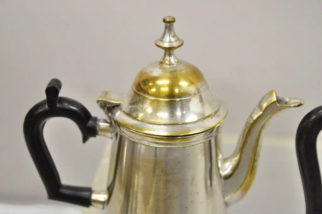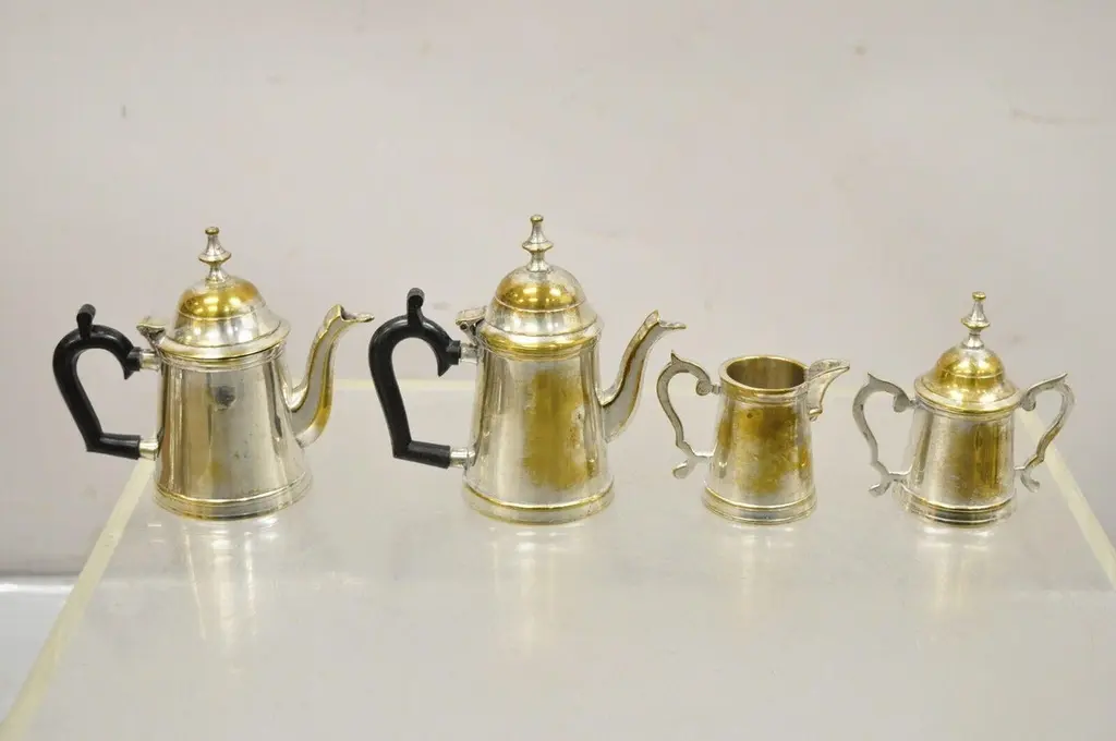 Vintage Federal Style Small Indian Silver Plated Coffee Tea Set W/ Wilcox Tray