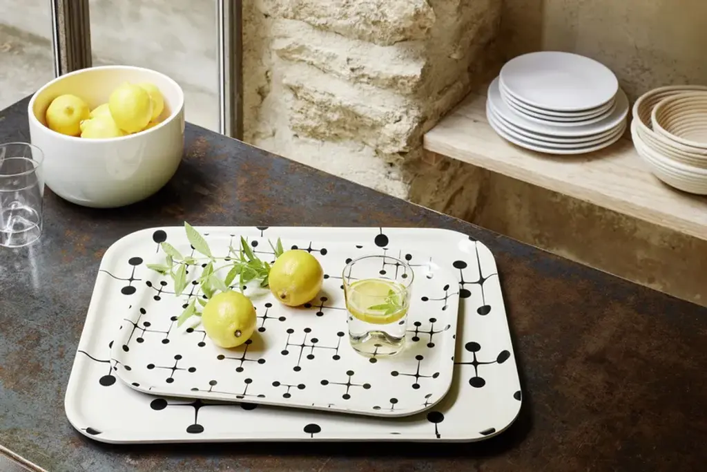 Dot Pattern Light is a rectangular tray.Material: laminated plywood (oak, Romania), food-safe, not dishwasher-safe.