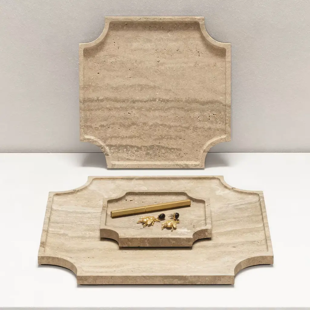 Vitruvio is a collection of travertine valet trays available in a variety of sizes, shapes, and colors, which takes inspiration from Classical architectural models and translates them into a graphic contemporary visual language. Being characterized by minimal lines, forms range from rigorously geometric to smoothly curved. Different Travertino finishes are available upon request.