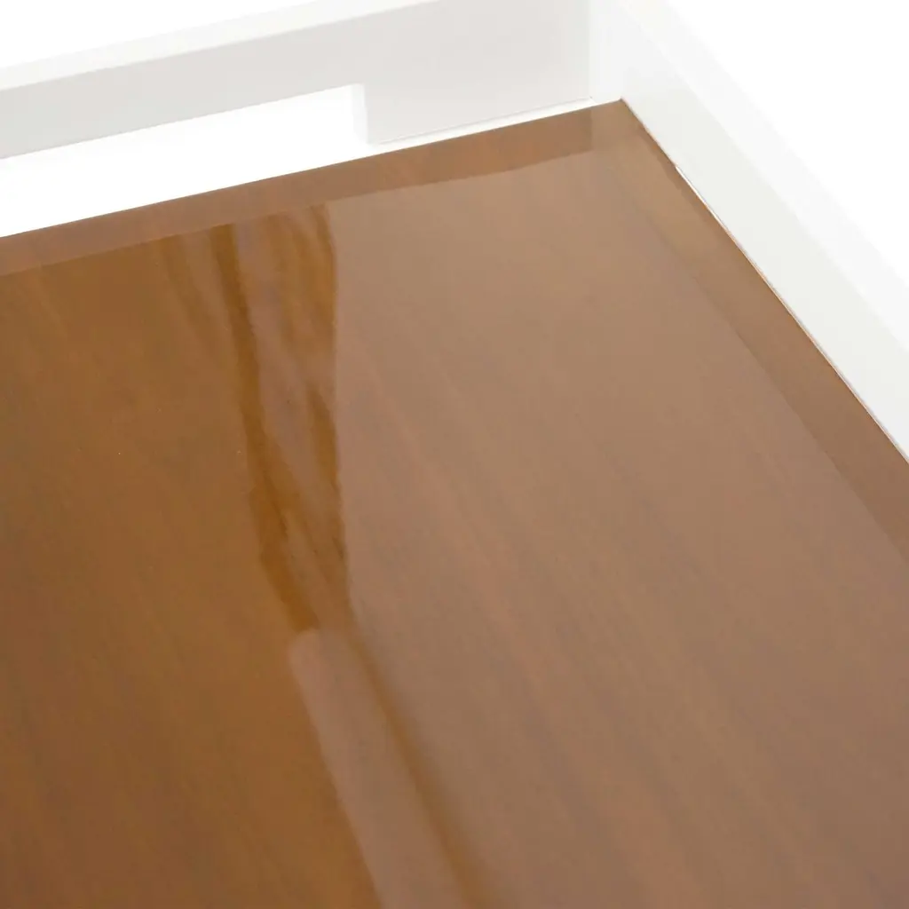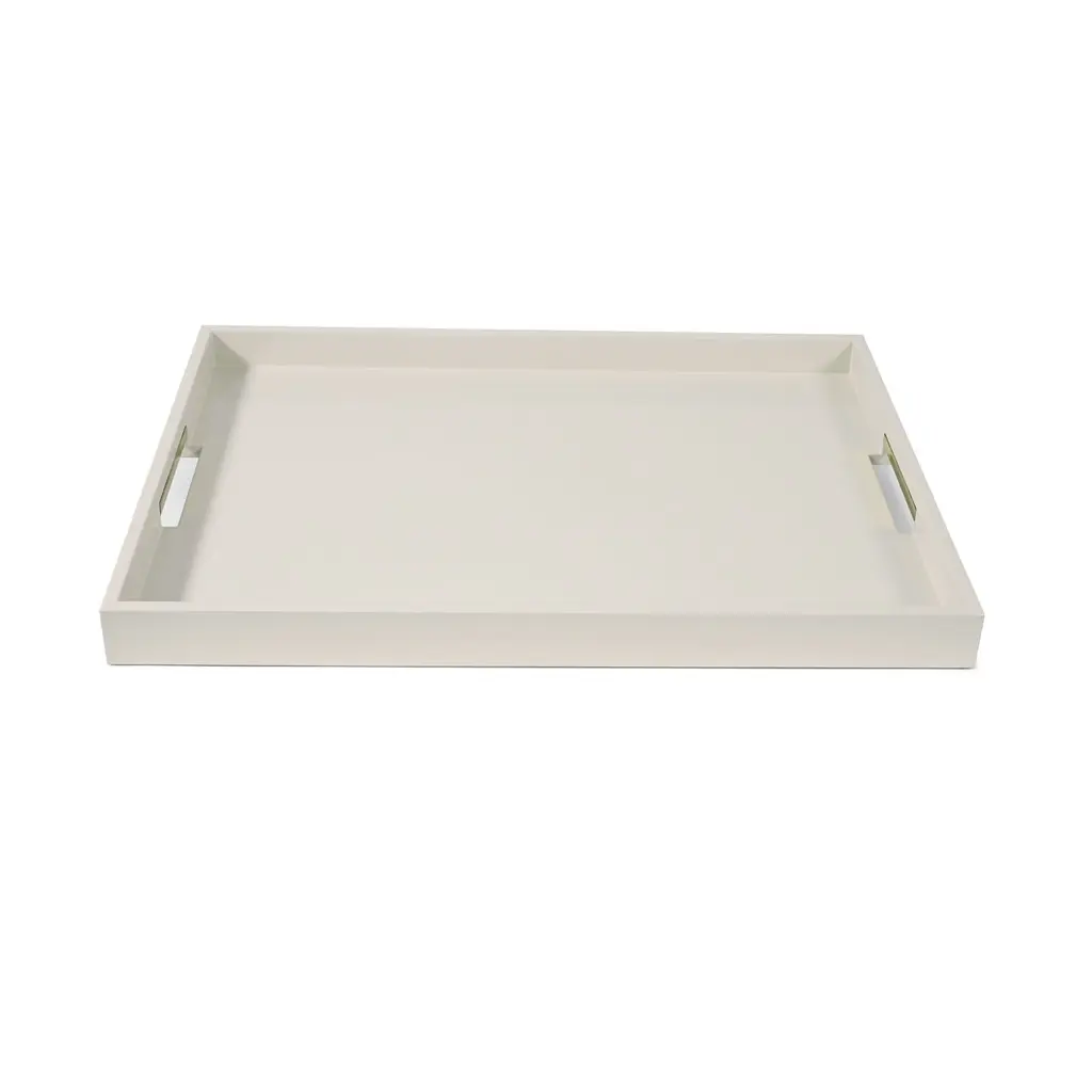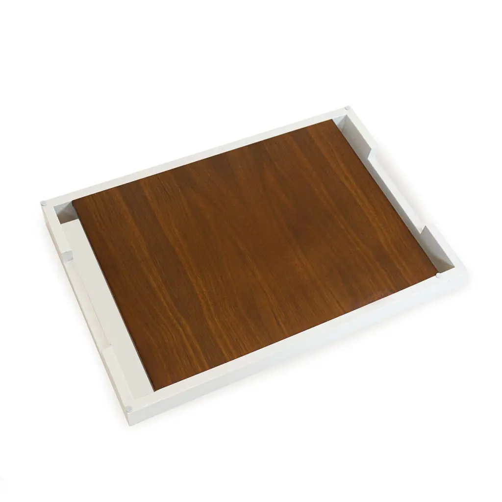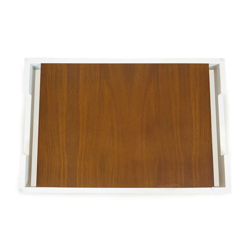 White lacquer tray made from solid hard maple features a contrasting Walnut Center. Perfect for displaying collectibles or as a serving piece. Tray can be customized in size, lacquer and wood species and finish. Customization may change price. Measurements:Outside: 26.5”W x 17.5”D x 2”HInside: 22”W x ”D x 1.03”HPrice shown: $730 eachCustomization may change price.How we work:Made to order by Connecticut-based furniture design and manufacturing company The Tailored Home. After orders are placed our workshop manager creates a visual work order for your approval for quality assurance.Customization options:Dimensions can be customized. The fabric shown may come in more colors. We also carry thousands of other materials and can send you samples and fabric pricing upon request. We accept your fabric for a COM fee of 5% of the cost of the piece. Welting, piping, tape or trim can be added. Different species available for pieces with exposed wood and can be painted & lacquered in any Benjamin Moore color (for additional charge) or stained in one of our stain options. Custom color matches cost $75 per sample.We accept inspiration photos of pieces you like.