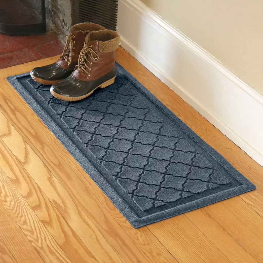 When life becomes a revolving door of muddy feet, dirty paws, and whatever else Mother Nature can throw your way; you need more than just a mat. You need an WaterHog. Built to tackle the rain, snow and mud your lovable messes bring in on their feet, the WaterHog® features tough PET fiber, a durable rubber backing and the unique Water Dam border; keeping dust, dirt, grime and moisture contained and off your floors. We make this rugged beauty right here in the USA from industrial grade materials designed for the most demanding environments, inside or outside. And because we use post-consumer materials in our rubber backing and fiber tops, you'll appreciate this environmentally friendly solution for years to come.