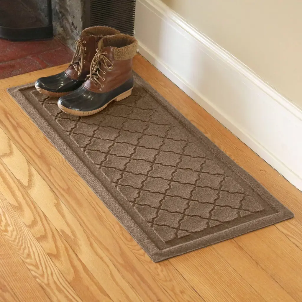 When life becomes a revolving door of muddy feet, dirty paws, and whatever else Mother Nature can throw your way; you need more than just a mat. You need an WaterHog. Built to tackle the rain, snow and mud your lovable messes bring in on their feet, the WaterHog® features tough PET fiber, a durable rubber backing and the unique Water Dam border; keeping dust, dirt, grime and moisture contained and off your floors. We make this rugged beauty right here in the USA from industrial grade materials designed for the most demanding environments, inside or outside. And because we use post-consumer materials in our rubber backing and fiber tops, you'll appreciate this environmentally friendly solution for years to come.