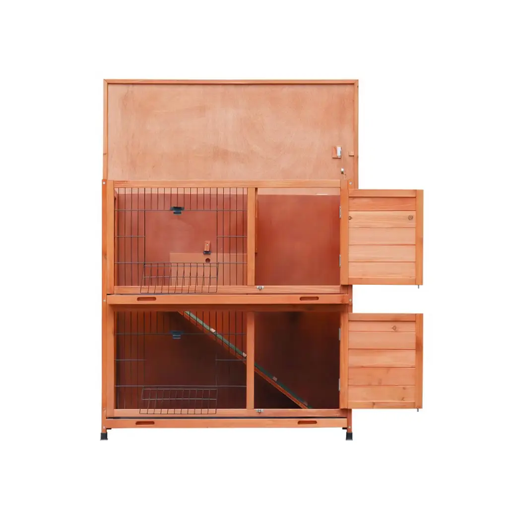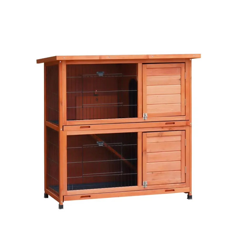 Whisen Outdoor 2-story Rabbit Cage With 2 Removable No-leak Trays - Natural
