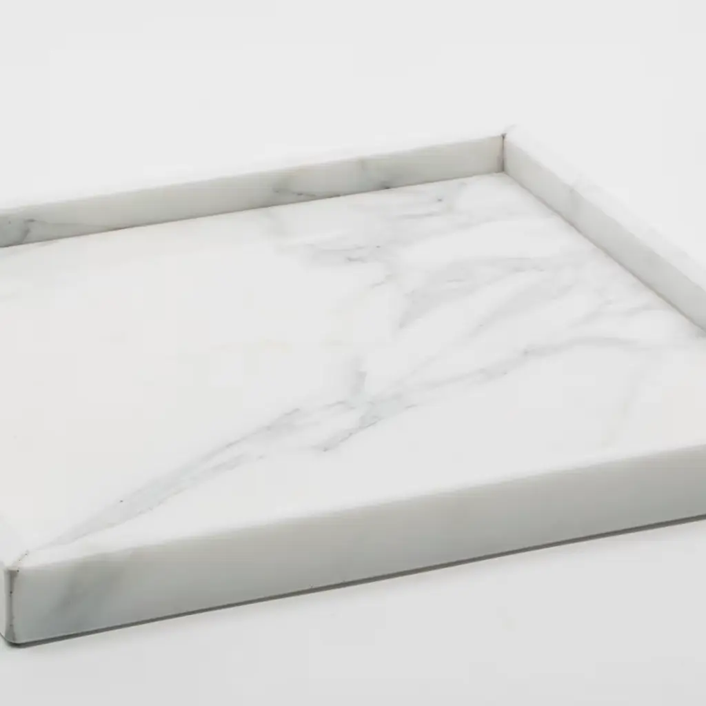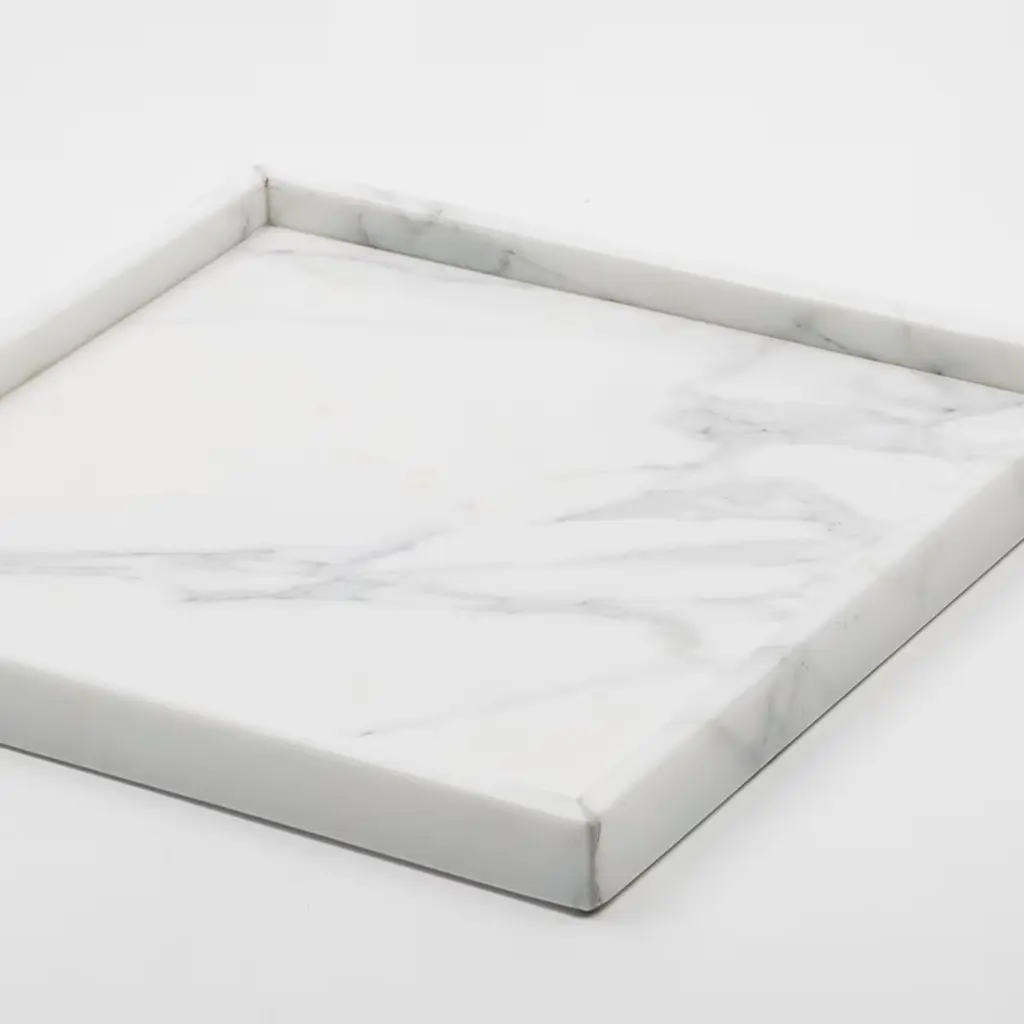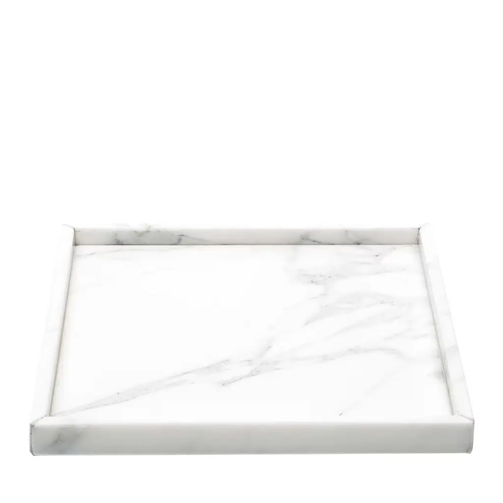 A sophisticated addition to an elegant home, this tray was crafted entirely of white marble and features 2cm-high sides attached at a 45-degree angle. Minimalist and refined, this piece can be combined with bathroom pieces and displayed in a powder room, or it can be used in an entryway as versatile vide poche, or living room as a display for collectibles or other white marble pieces by Fiammetta V.