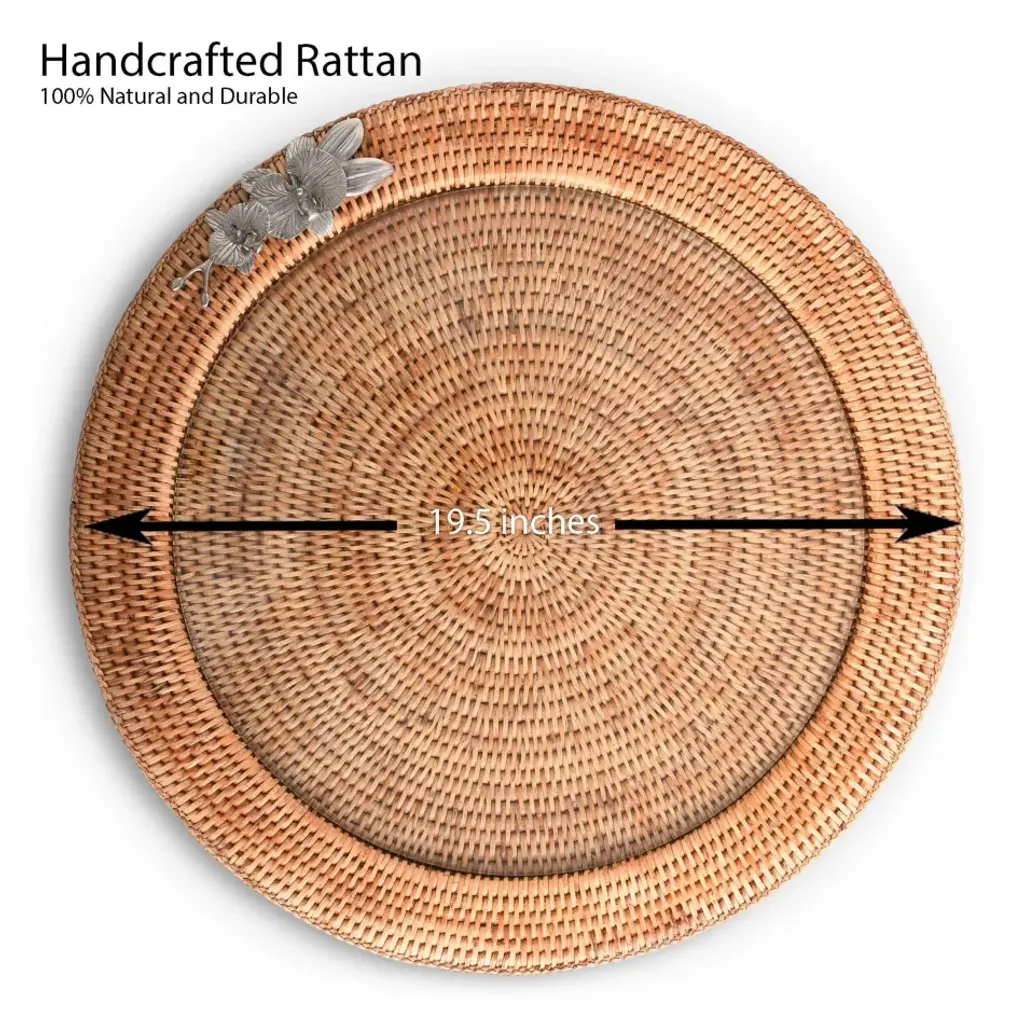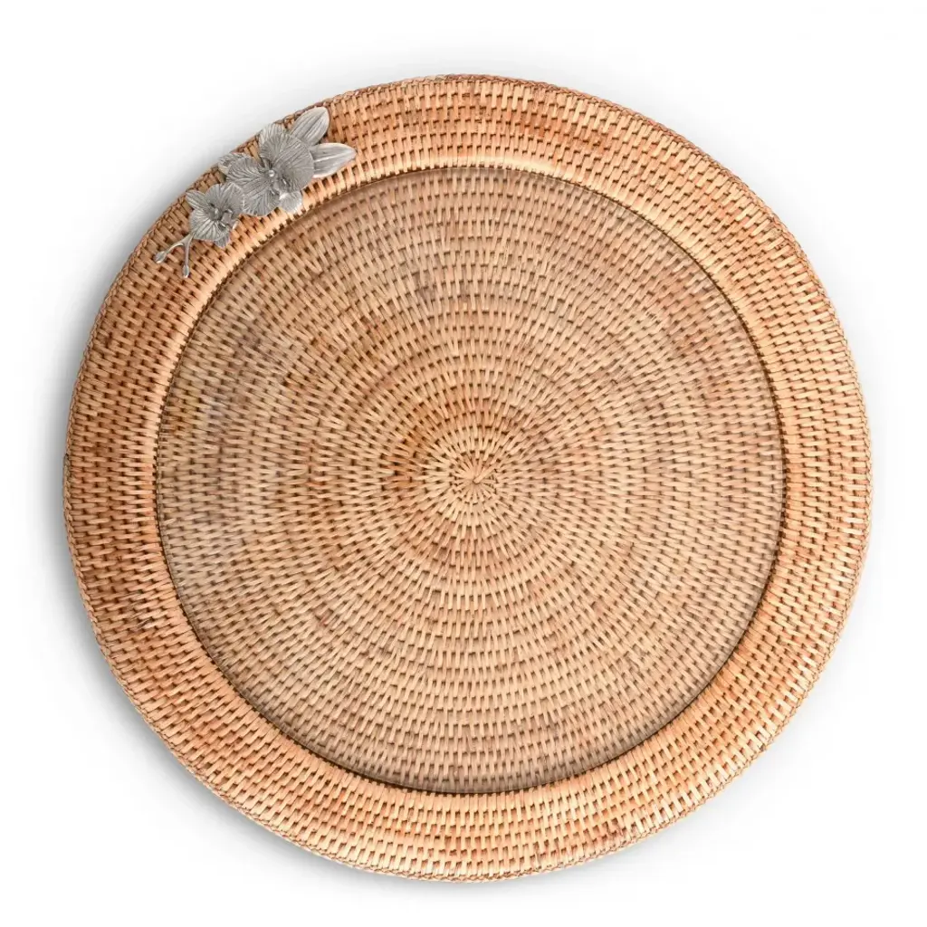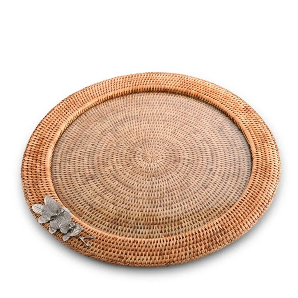 Wicker Rattan Orchid Serving Tray Round 19 Inch