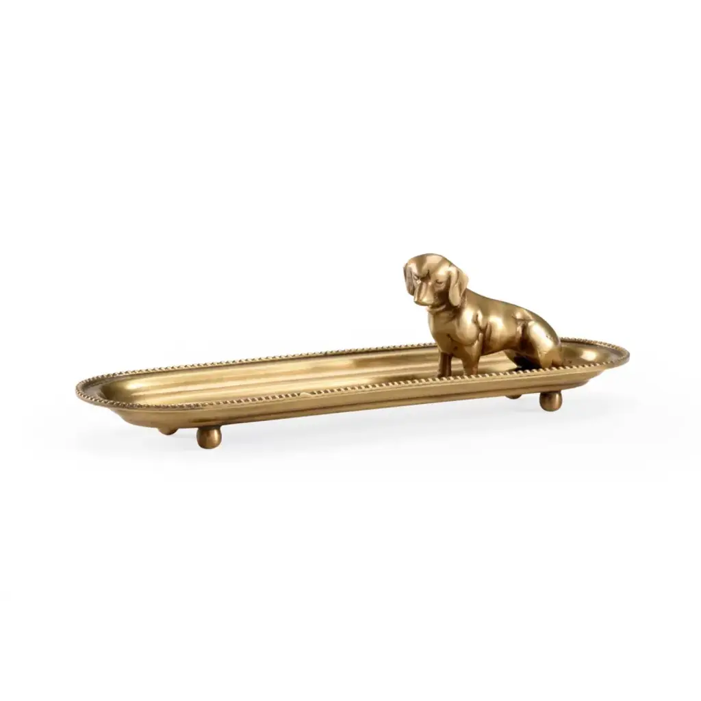 Antique Brass Dog Coin Tray. For Decorative Use Only.