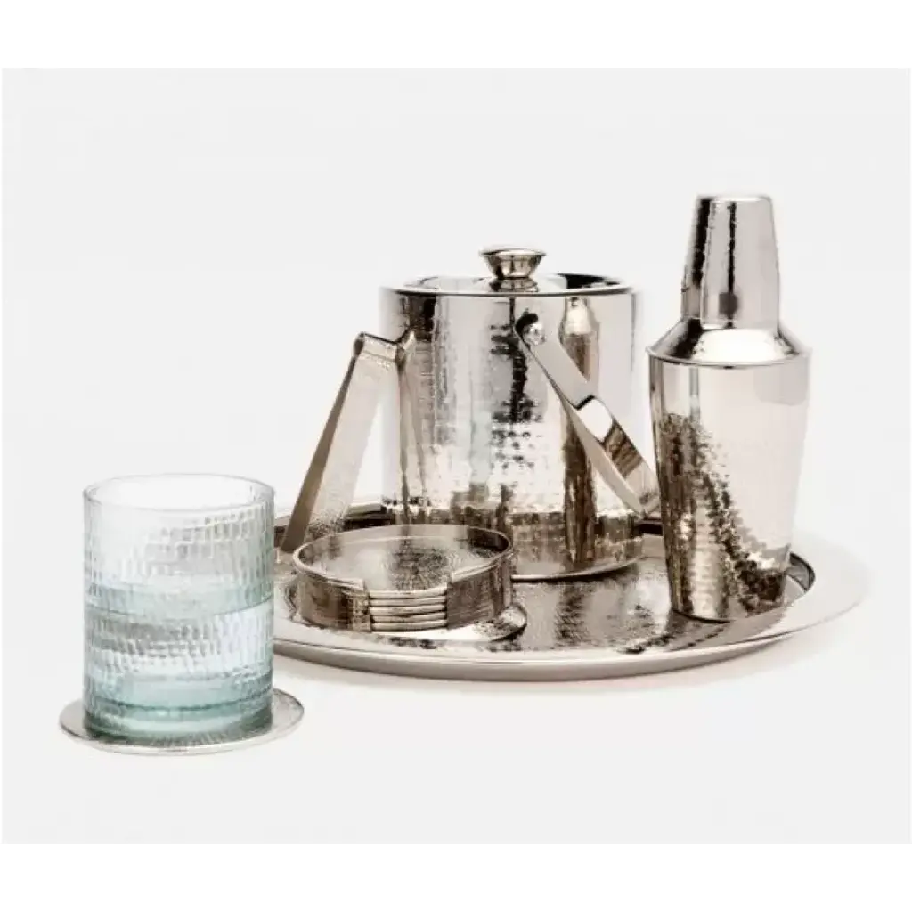Make your bar modern with the shiny hammered nickel and brass of our newest collection. The Winsford’s crisscross-patterned surface adds a textural depth to its bottle-service-worthy shine. Blue Pheasant's products are handmade with care by artisans using natural materials. They are not mass produced, so variation between products should be expected, and this is why we love them! It is these irregularities that makes Blue Pheasant what it is—a special brand whose collections are distinctly handmade, full of charm and originality you’ll never find in machine-made products.