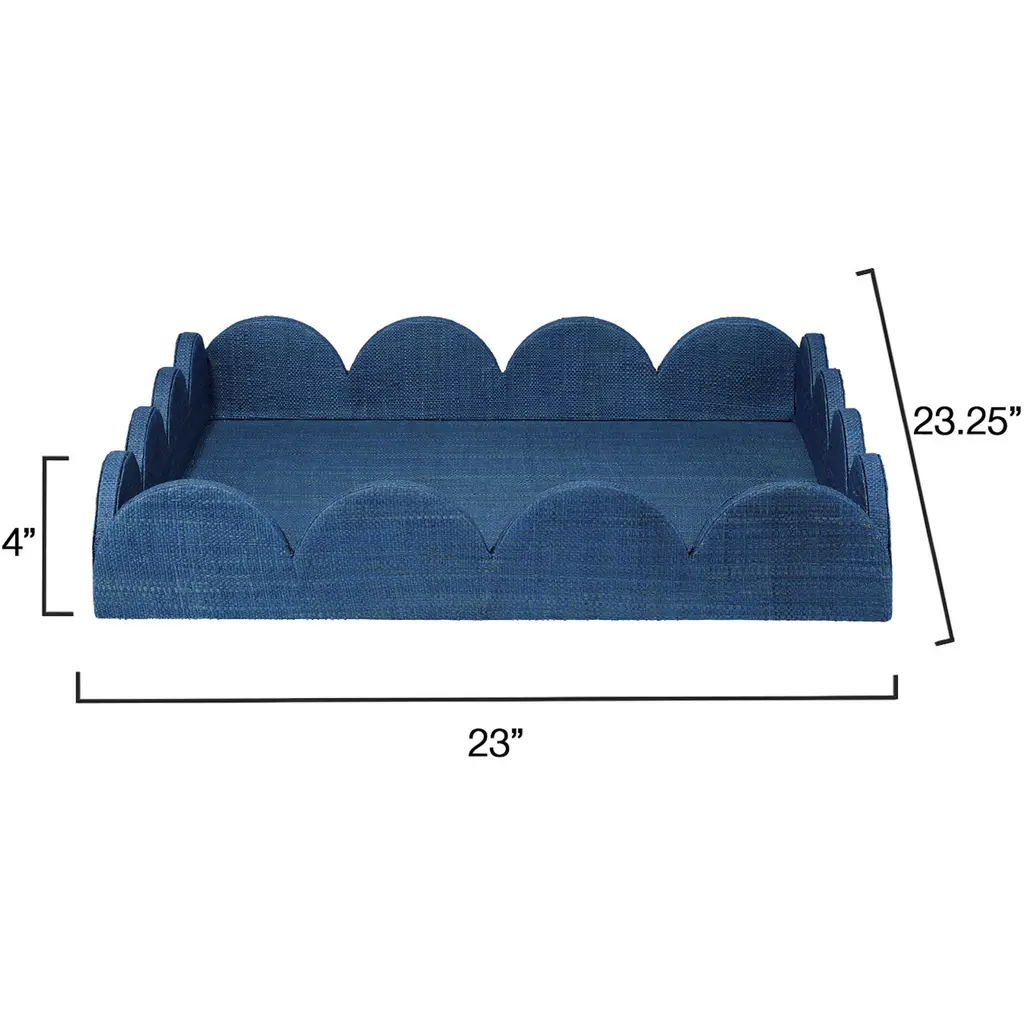 Wrapped in raffia as blue as the perfect cloudless summer sky, this lovely tray rests on a slim antiqued brass riser and has been meticulously crafted by hand. It has a casually elegant style, and is as useful as it is beautiful. Place one by the door to stash keys or correspondence, in the living room to showcase a set of treasured collectibles, or in a dressing area to keep glasses and the days jewelry at hand.