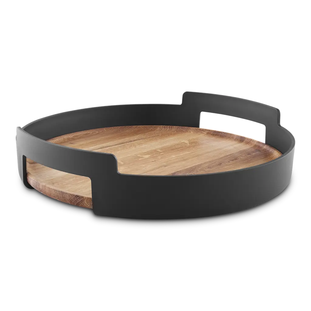 Whether you need a go-to spot to set your keys and wallet while at home or are looking for the perfect piece to display your favorite vase, the Wood and Metal Tray from Hearth & Hand™ with Magnolia makes a great pick. This round decorative tray features a medium-hued wooden base that's accented by a black metal wire rim. The simple, modern design is easy to incorporate with a variety of decor to suit your aesthetic, and you'll appreciate how easy the attached handles make it to move the tray around your space when you want to mix things up.Hearth & Hand™ with Magnolia: Gather ∙ Create ∙ Enjoy