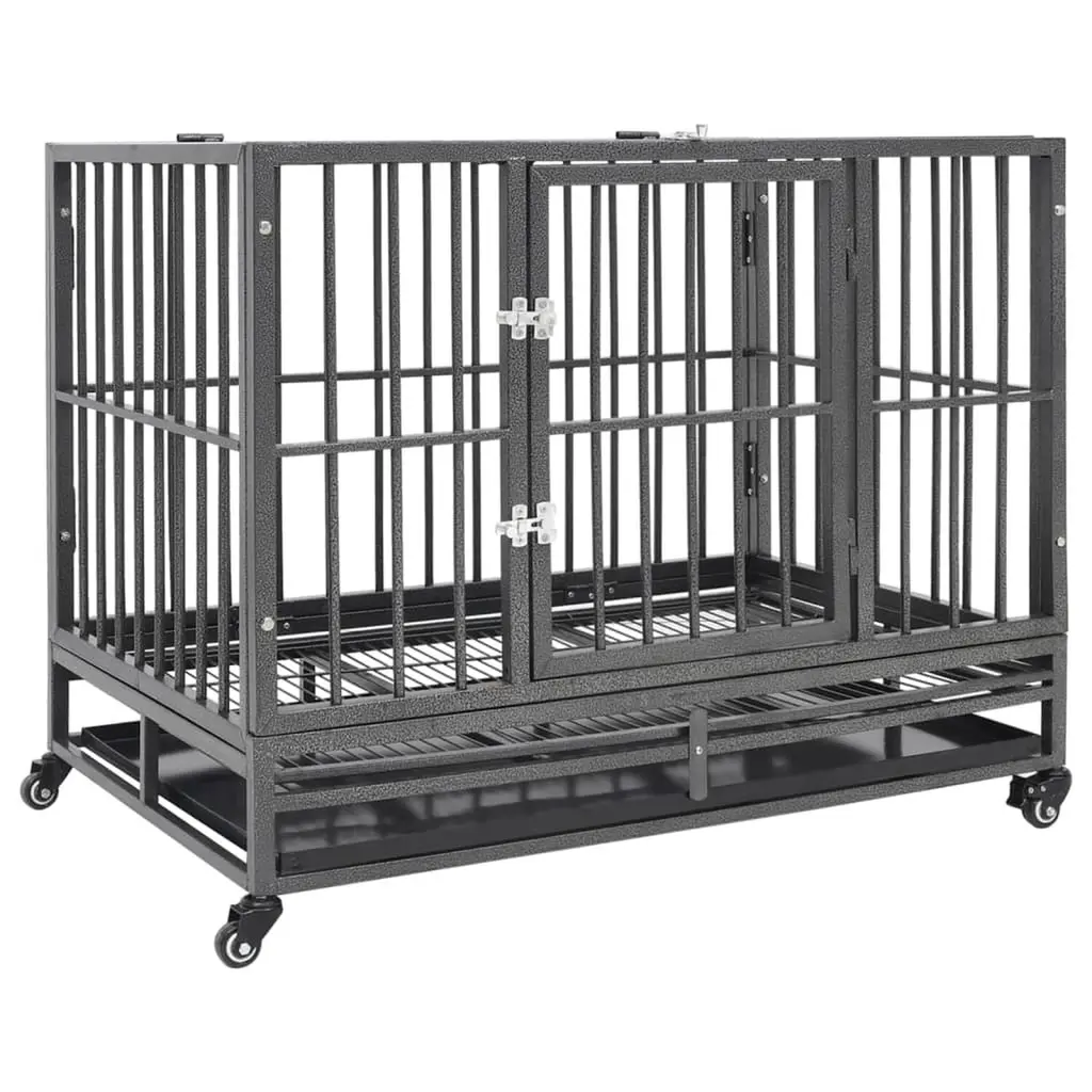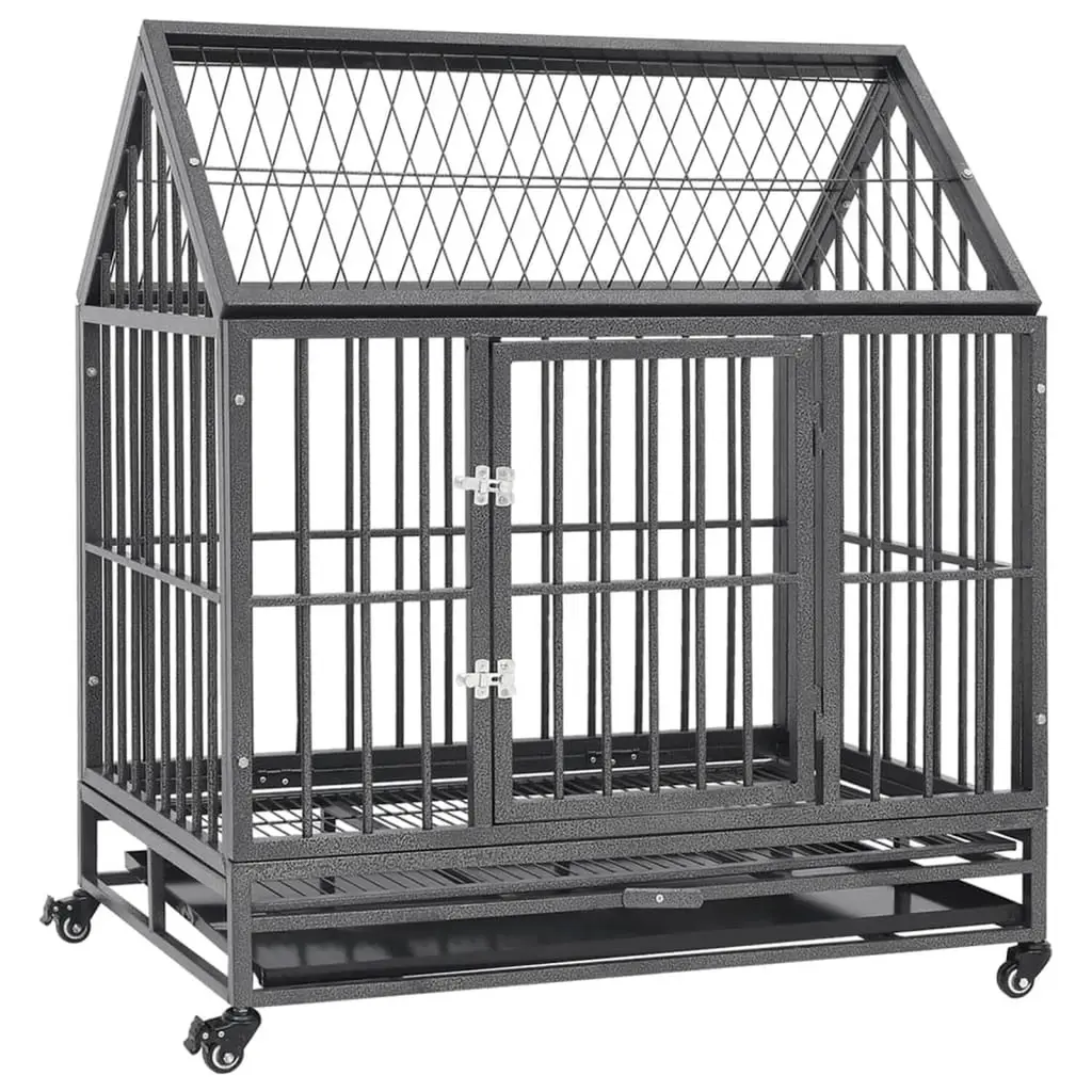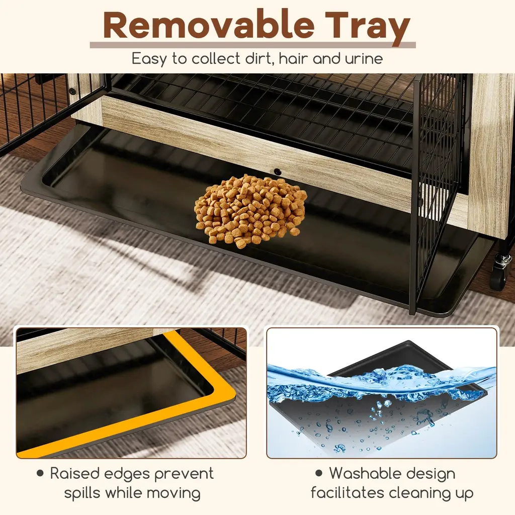 Wooden Dog Crate/kennel With Flip-Top, Tray And 3 Lockable Doors And Wheels - 38" X 25" X 30.5" (L X W X H) - Grey