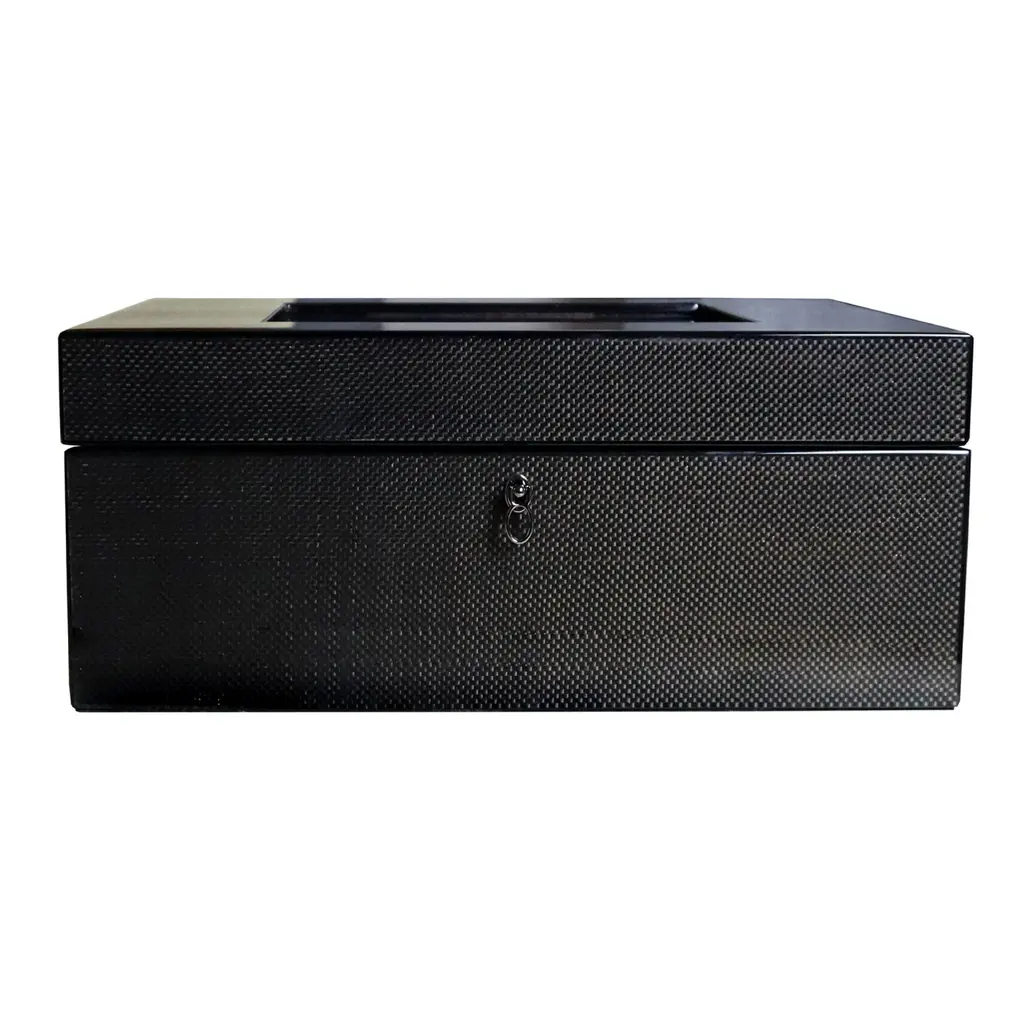 Since 1949, Agresti has crafted the pinnacle of luxury safes, trunks, and jewelry boxes in Florence, using only the finest materials, including full-grain leather, exotic woods, and textures like shagreen. As the premier name in high-end, custom solutions for safeguarding valuables, Agresti integrates cutting-edge security features: biometric access, secret compartments, unique keys, and hidden doorseverything you see in movies, they make real. Favored in multimillion-dollar estates, yachts, and private jets. Contact us to discover more about this exceptional product. Store and display your cigars in luxury with the Agresti Avana Nera Wooden Removable Tray Humidor. Crafted from ebony with a cedar lining, this humidor can hold up to 100 cigars and includes two humidification units and a hygrometer. Elegant and exclusive, it's the perfect addition to any cigar enthusiast's collection.